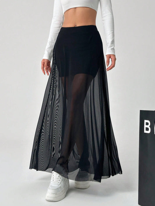 EZwear Mesh Double-Layer Perspective Hip-Wrapped Mini Skirt
