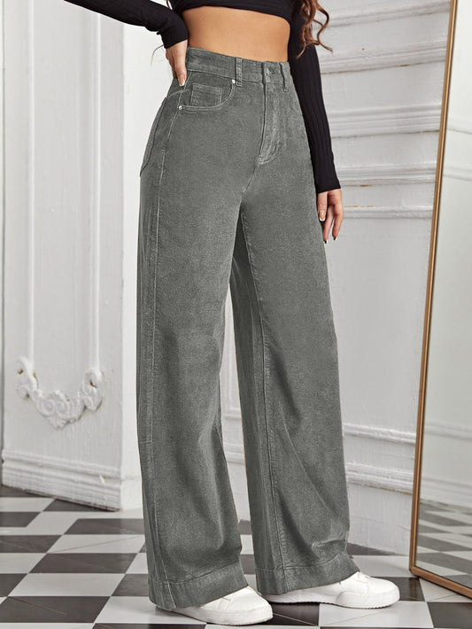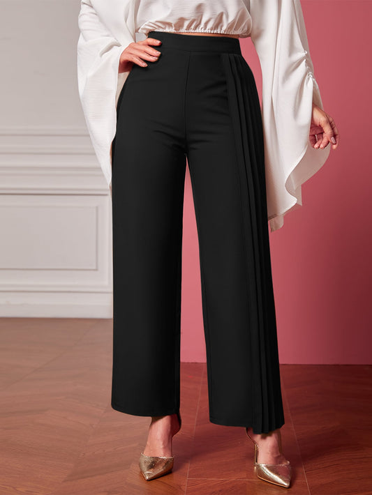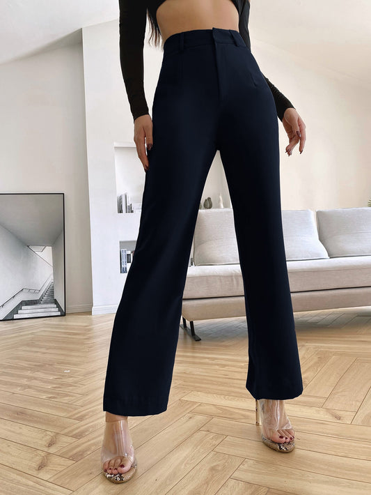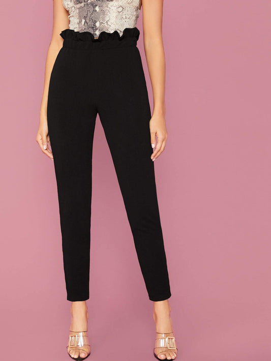 Frenchy Solid Eyelet Buckle Belted Tailored Pants