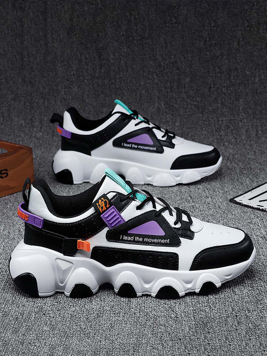 Men Colorblock Slogan Graphic Lace-up Front Chunky Sneakers