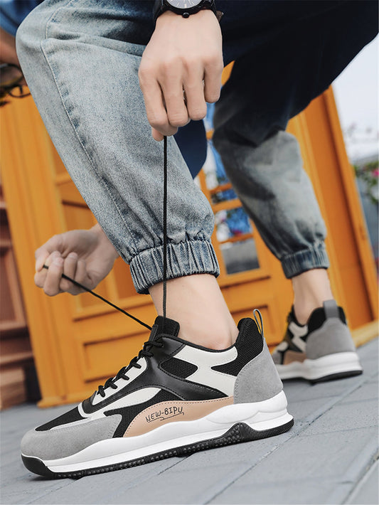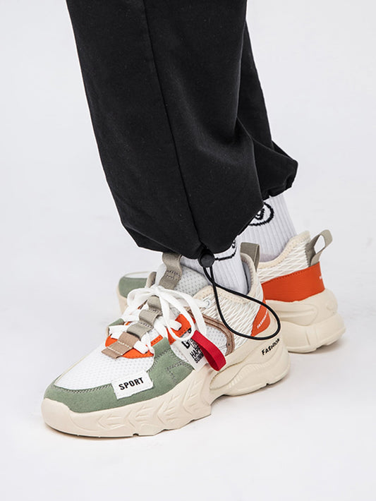 Men Two Tone Strap Lace-up Front Chunky Sneakers
