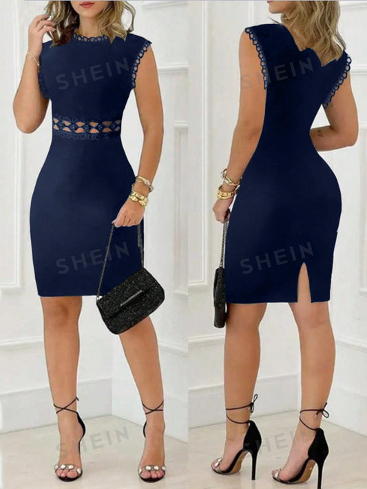 Clasi Women's Summer Elegant Solid Color Slim Fit Sleeveless Dress With Hollow Out Design