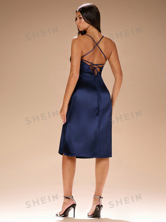 Women's Summer Solid Color Ruffle Draped Neck Hem Elegant Camisole Dress