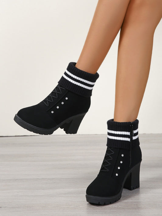 CUCCOO Trending Women Minimalist Chunky Heeled Fashion Boots
