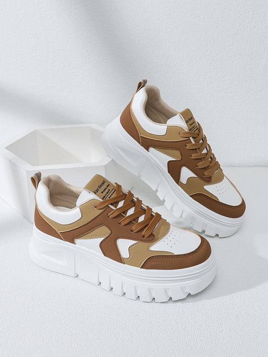 Style Thick-soled Height-increasing Casual Sports Shoes, Comfortable, Wear-resistant, Flat, Low-top, Lace-up, Sneakers For Students