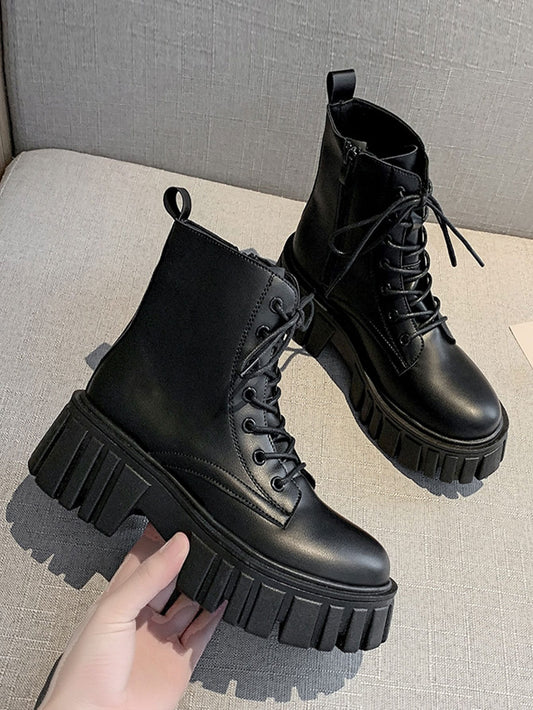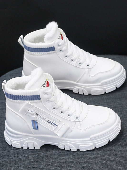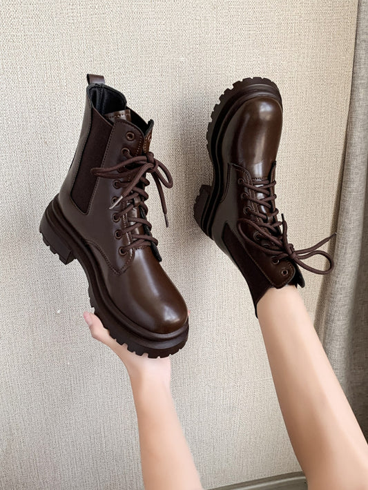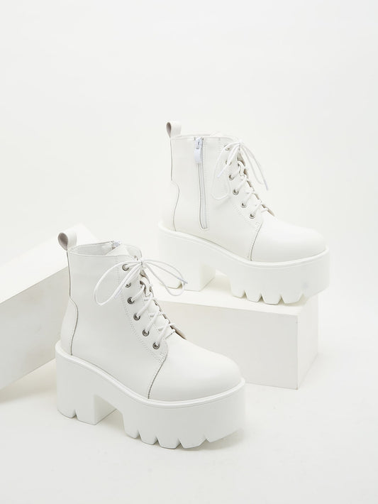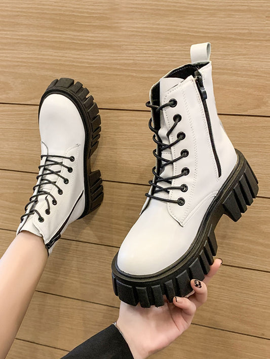 Lace-up Front Side Zipper Fashion Boots, Fashion White Combat Boots
