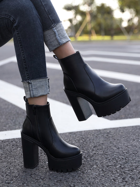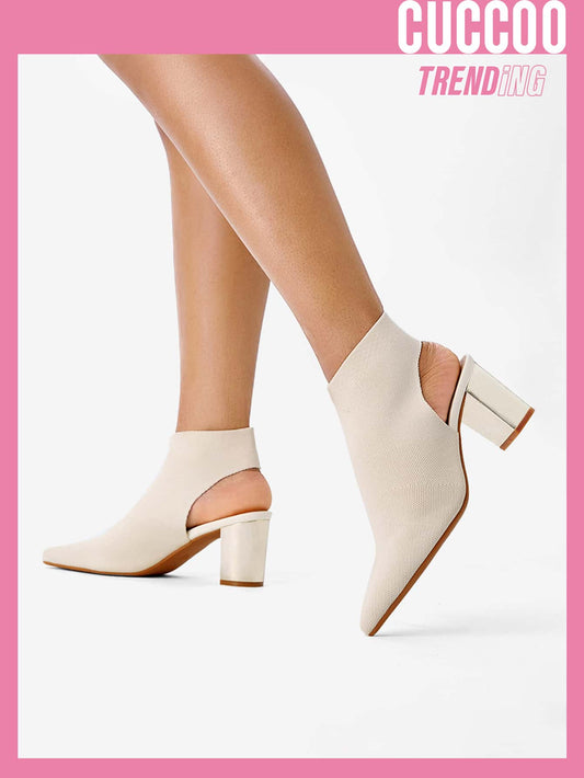 CUCCOO Trending Minimalist Point Toe Chunky Heeled Sandal Boots