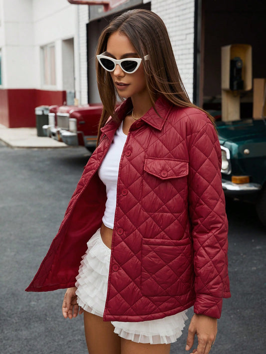 Frenchy Women Color Block Front Button Placket Sleeveless Pockets Casual Padded Coat Fashionable Casual Geometric Quilted Long Sleeve Jacket With Pockets
