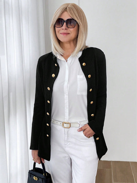 EMERY ROSE 1pc Women Regular Fit Solid Color Golden Button Decor Jacket
