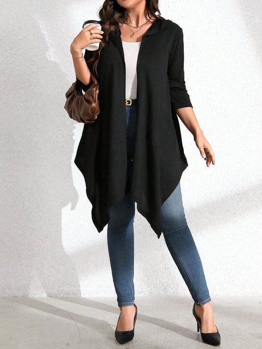 LUNE Plus Size Women Solid Color Knit Christmas Casual Asymmetrical Hem Long Sleeve Hoodie Jacket