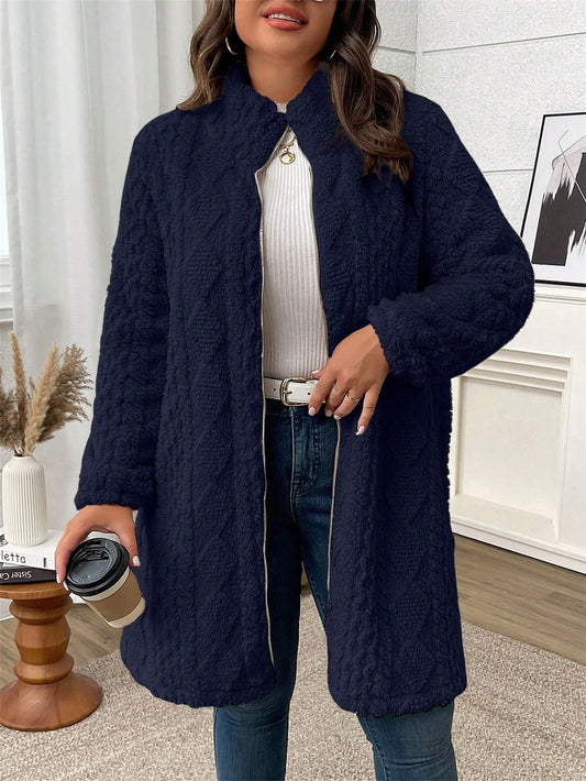 LUNE Plus Size Casual Solid Color Long Jacket, Autumn
