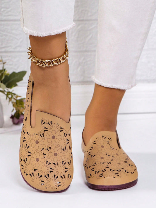 Women's Hollow Out Design Breathable Casual Flat Loafers, Sunflower & Daisy Slip-Resistant Soft Sole Soft Leather