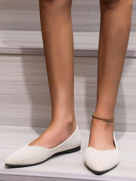 Women Clear Detail Glitter Decor Flats, Fashionable Point Toe Flat Shoes