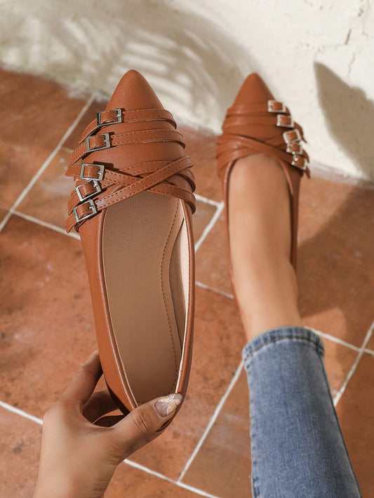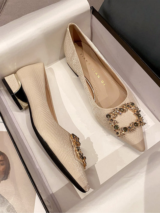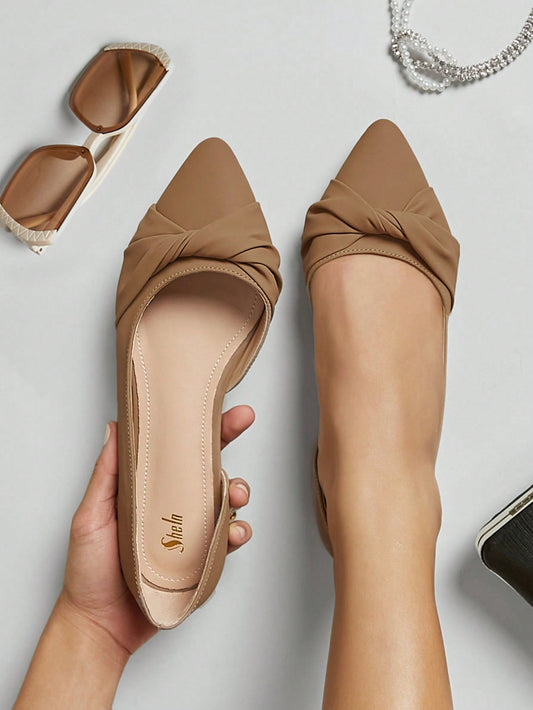 Women Rhinestone Metal Decor Flats, Fashionable Point Toe Flats