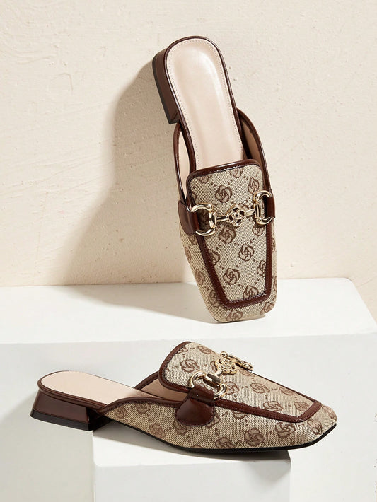 Women's Flat Square Toe Embroidery Fashion Buckle Mules