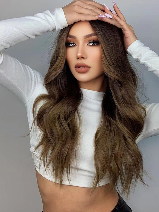 HAIRCUBE 26 Inch Long Ombre Brown Wigs Middle Part Curly Synthetic Wigs Beautiful Vigorous Women's Wigs for Party Daily Use