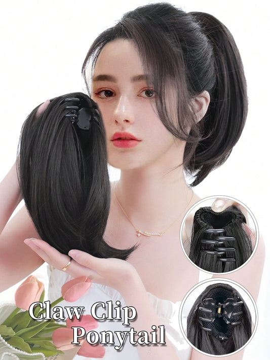 12 Inch High-temperature Silk Black Small Claw Clip Inside Buckle Ponytail Synthetic Hair Extension