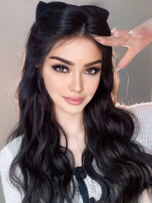 Body Wave Black 18-22 Inch V-Shaped Clip In Synthetic Hair Extension For Women