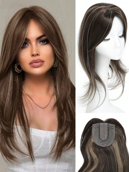 18 Inch Hair Toppers for Women Brown Wavy Toppers Synthetic Hair Pieces for Women Wiglets Hairpieces for Thinning Hair Topper