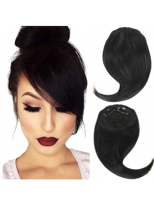 Thick Side Bangs Double Clips Synthetic Bangs Tassel Sweep Bangs Hair Extension Fashionable Natural Look Hair Accessory For Girls Black