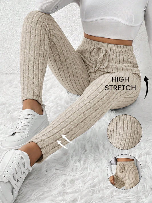 PETITE Tie Waist Ribbed Knit Bodycon Leggings
