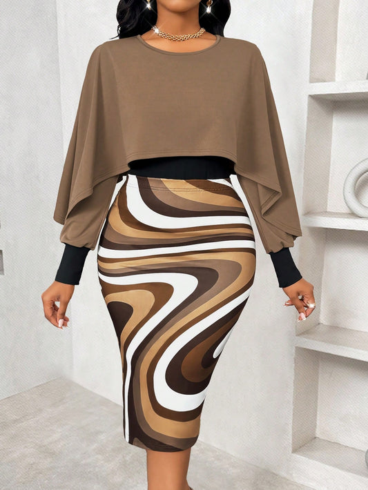 Women Elegant Patchwork Vintage Style Top And Skirt 2-Piece Set