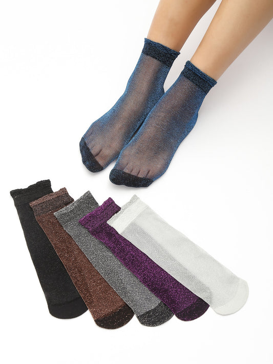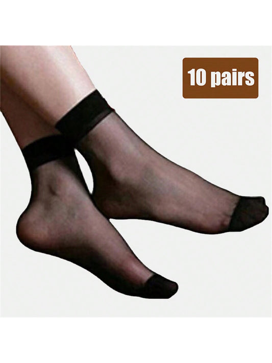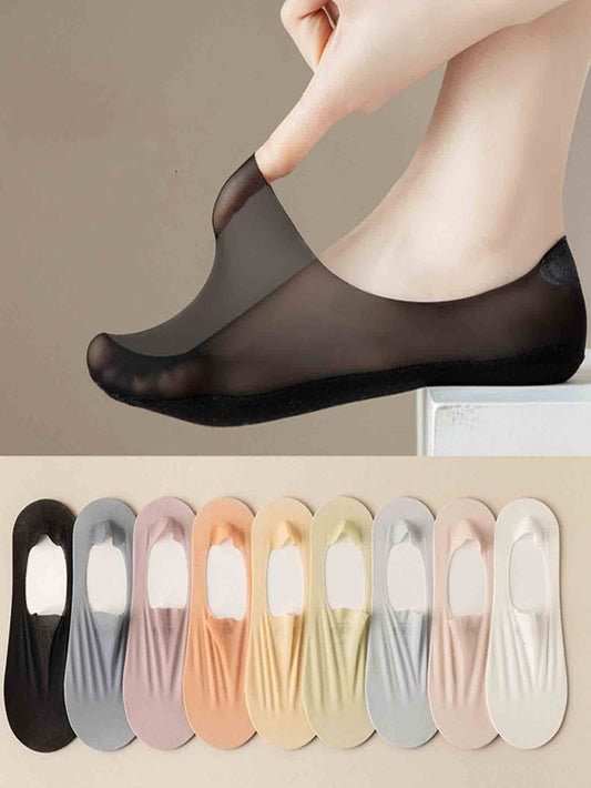 10 Pairs/pack Black/velvet Crystal Thin Transparent Short Socks Women's Invisible Boat Socks Nylon Stockings