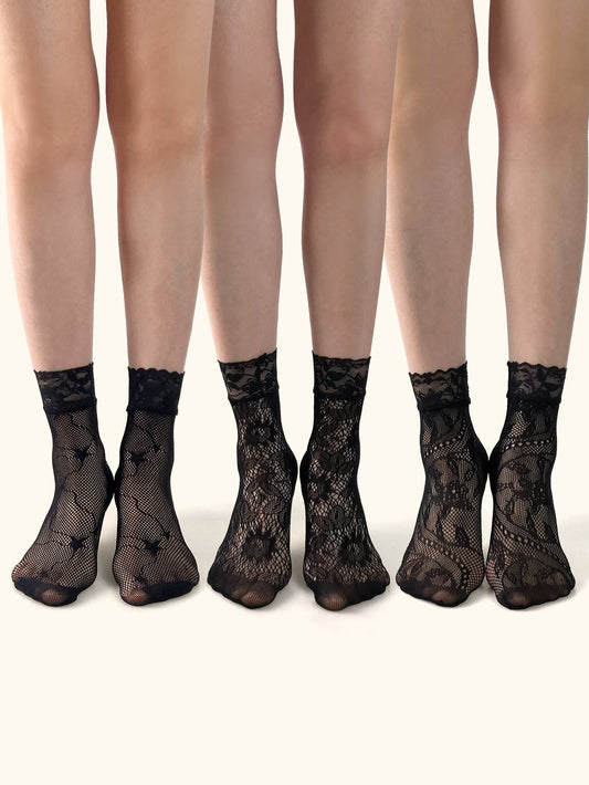 3pairs Rhinestone Decor Fishnet Mesh Tights