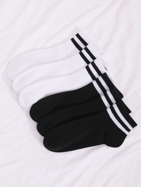pair of women's black and white horizontal striped knee socks for spring and autumn