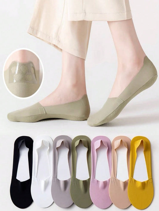 7pairs Women's Korean Style Ins Wind Non-slip Casual Big Toe Invisible Boat Socks With Mixed Colors