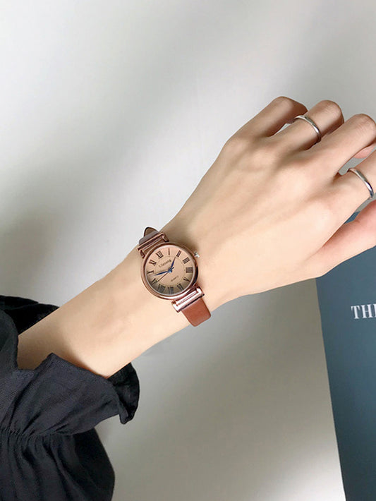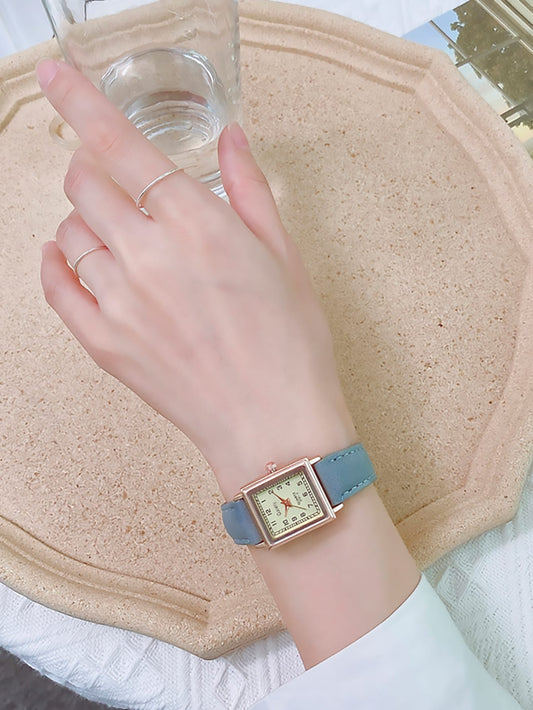 1pc Quartz Small Watch With Square Roman Numerals Dial Vintage Dress Watch Rhinestone Wristwatch Holiday