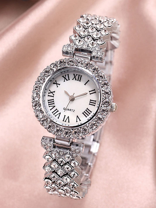 1pc Rhinestone Decor Watch & 2pcs Bracelet