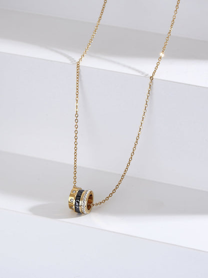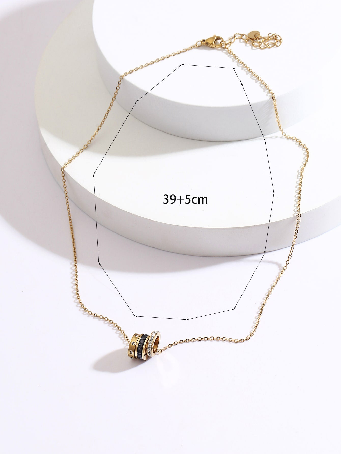 14K Gold Plated Rhinestone Ring Charm Necklace