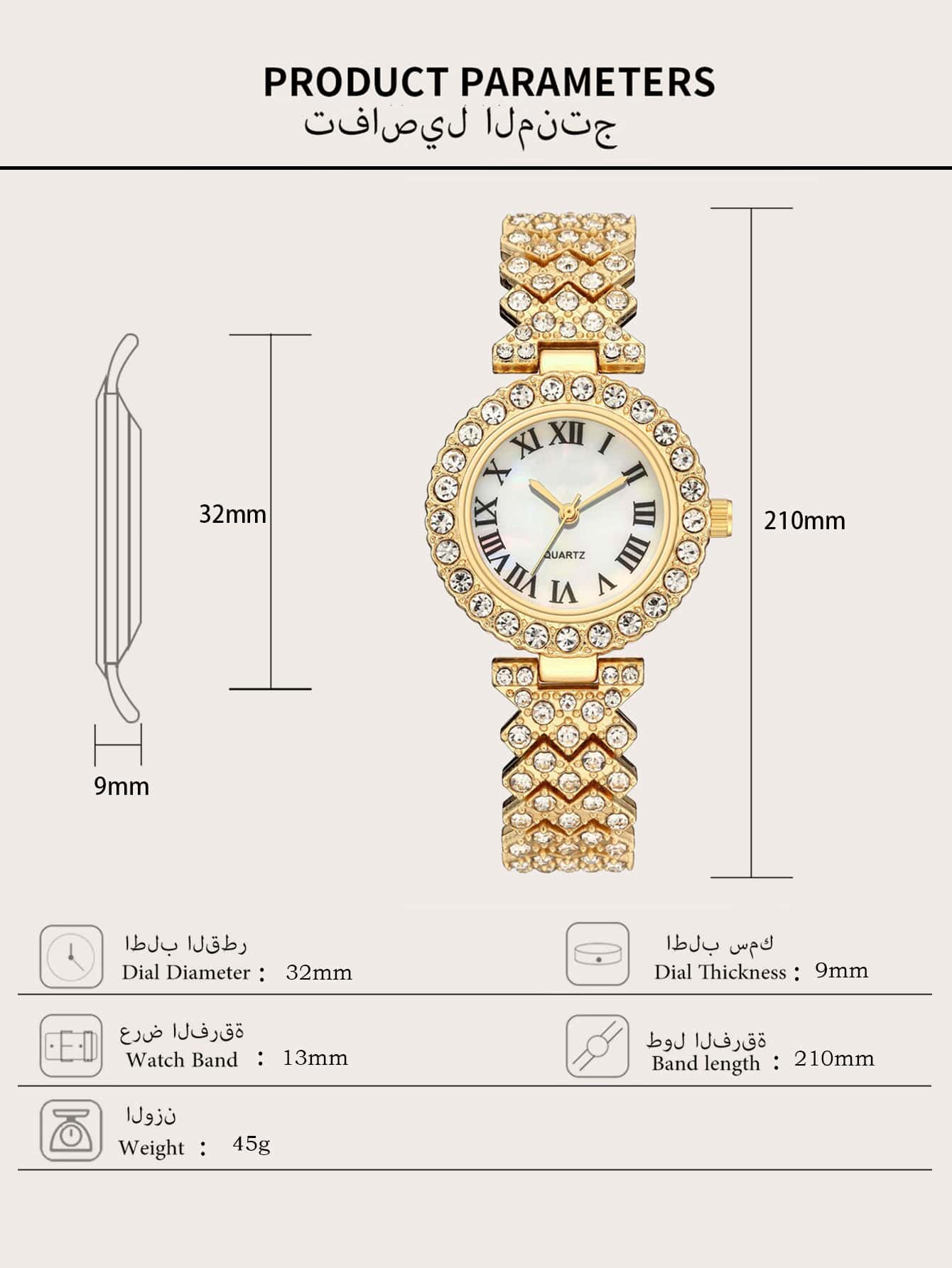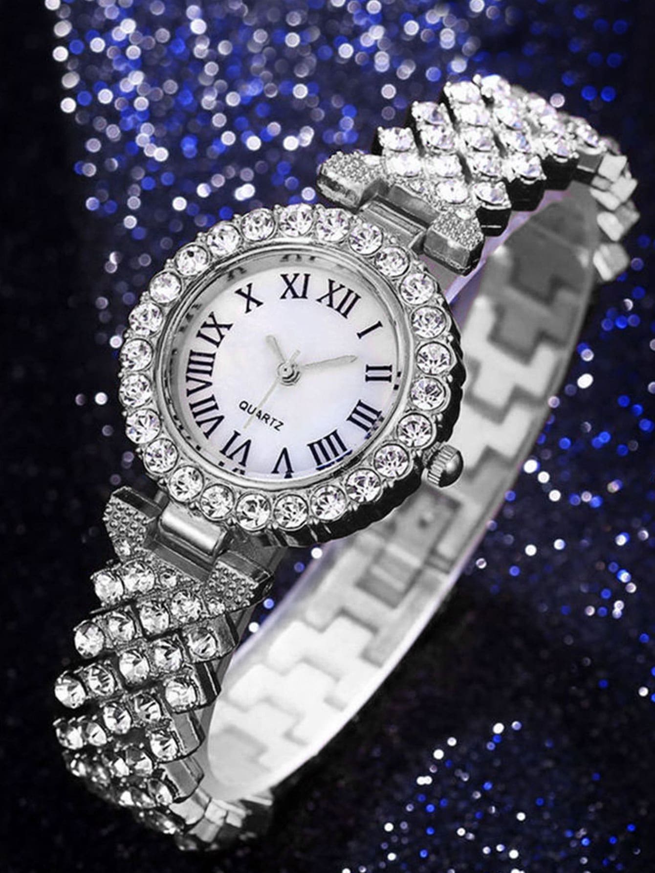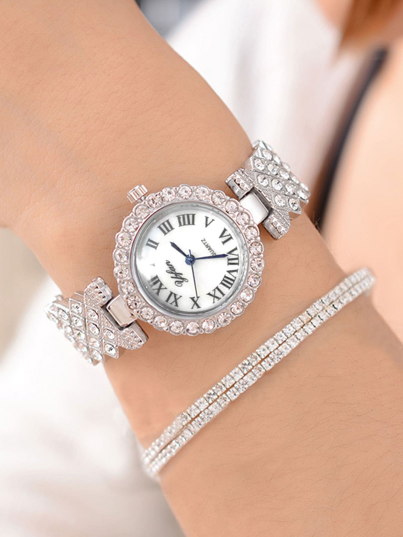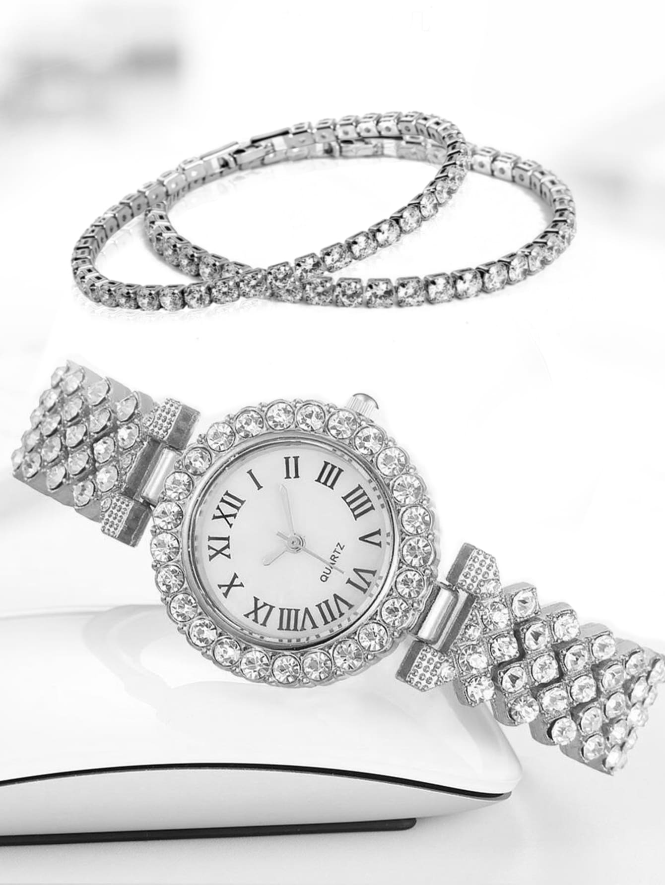 1pc Rhinestone Decor Watch & 2pcs Bracelet