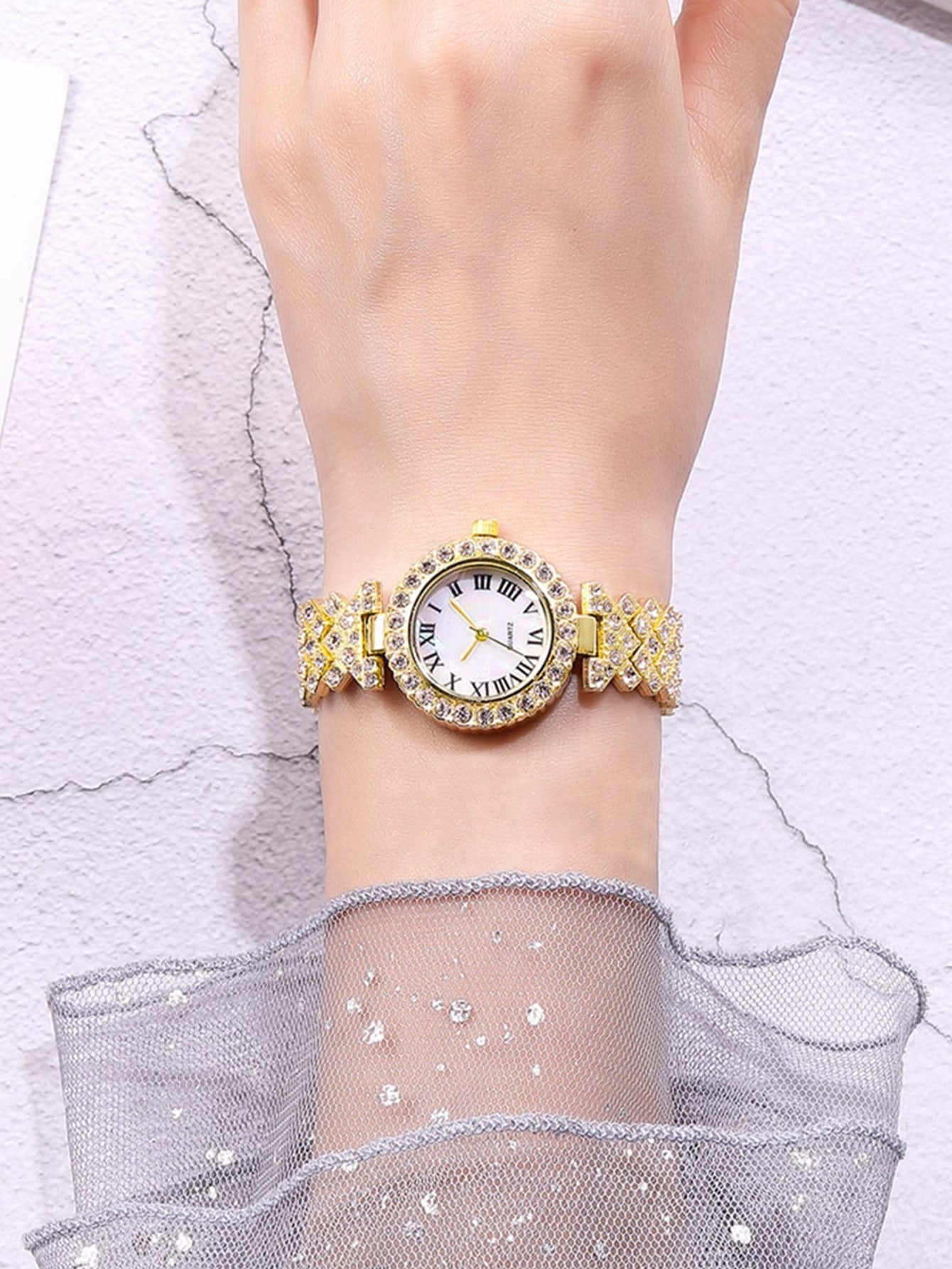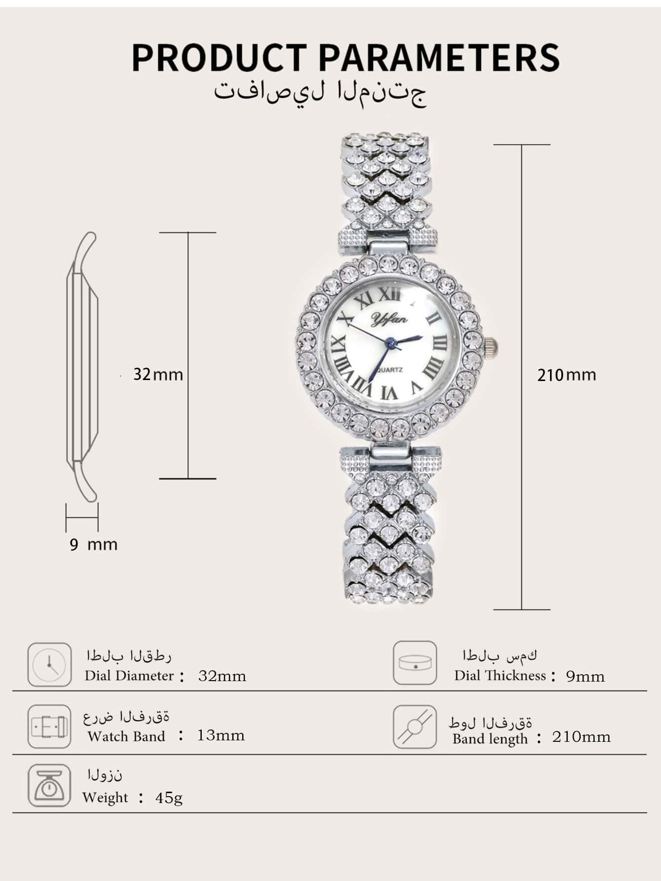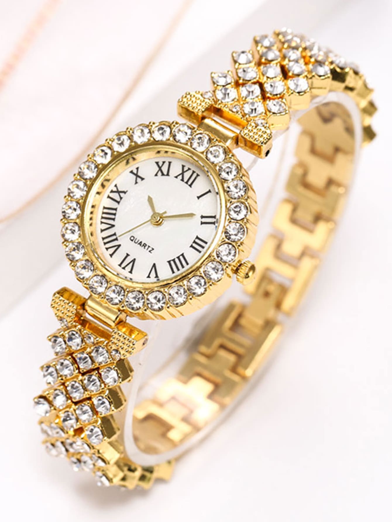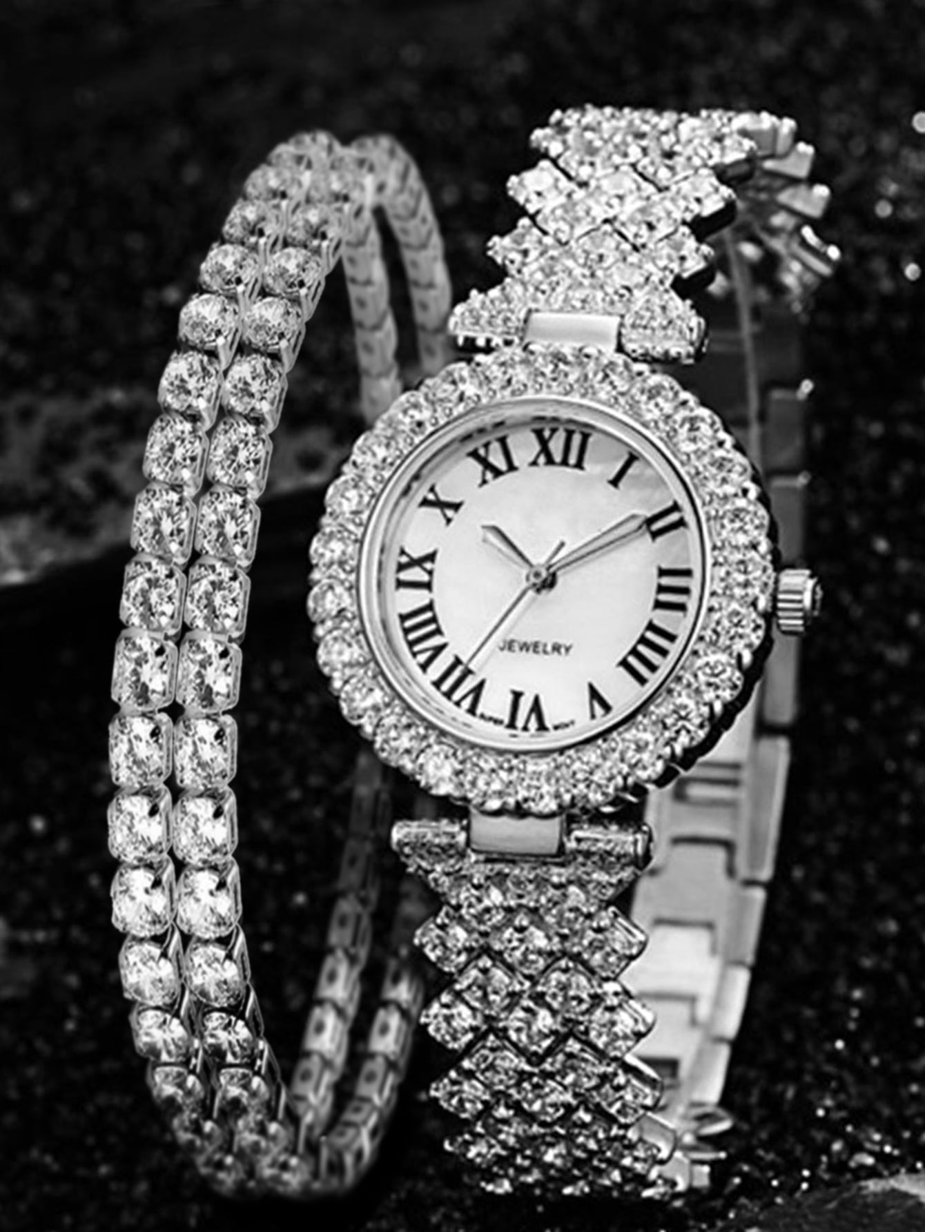1pc Rhinestone Decor Watch & 2pcs Bracelet
