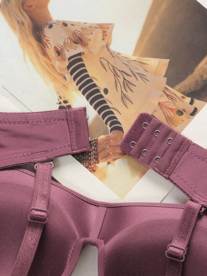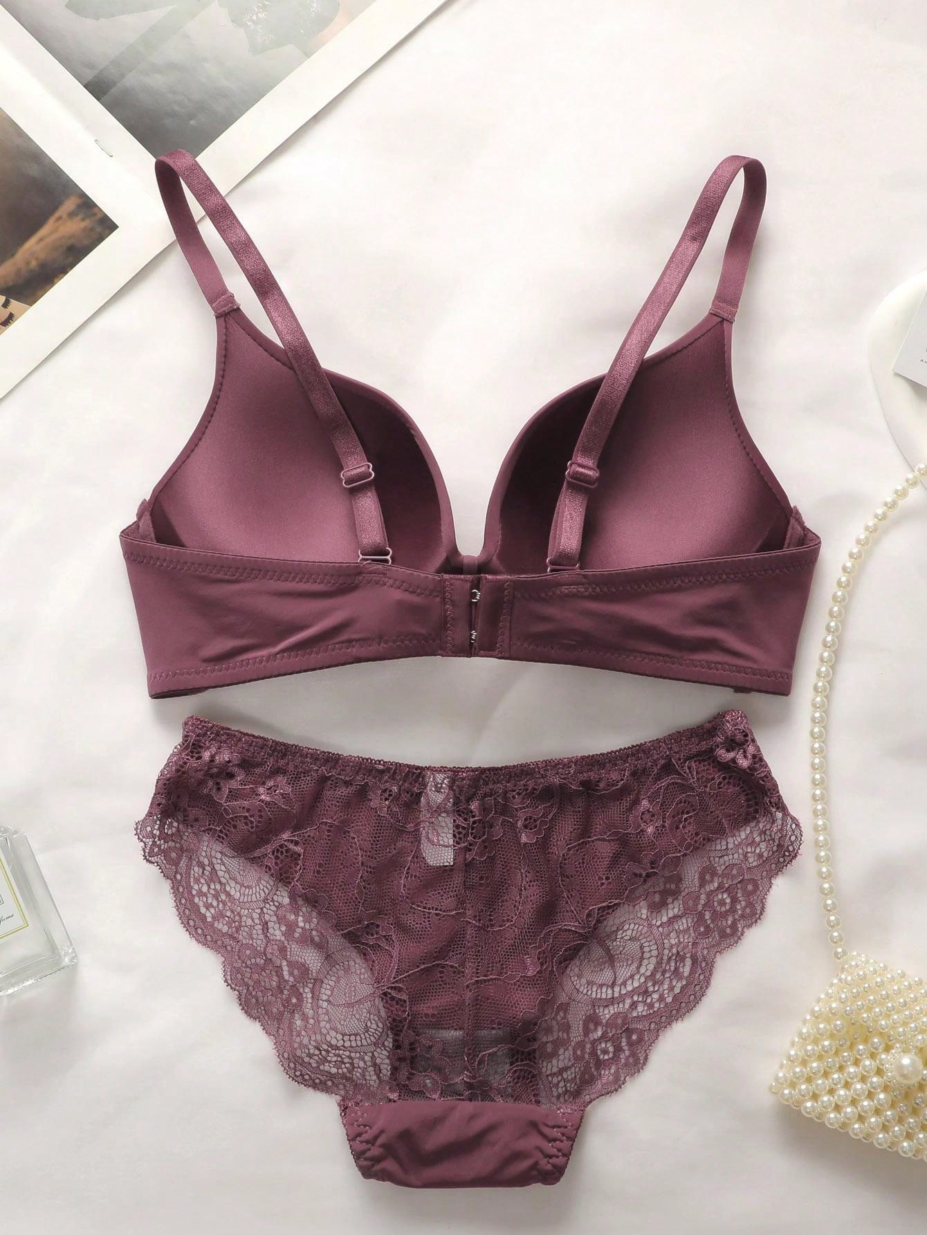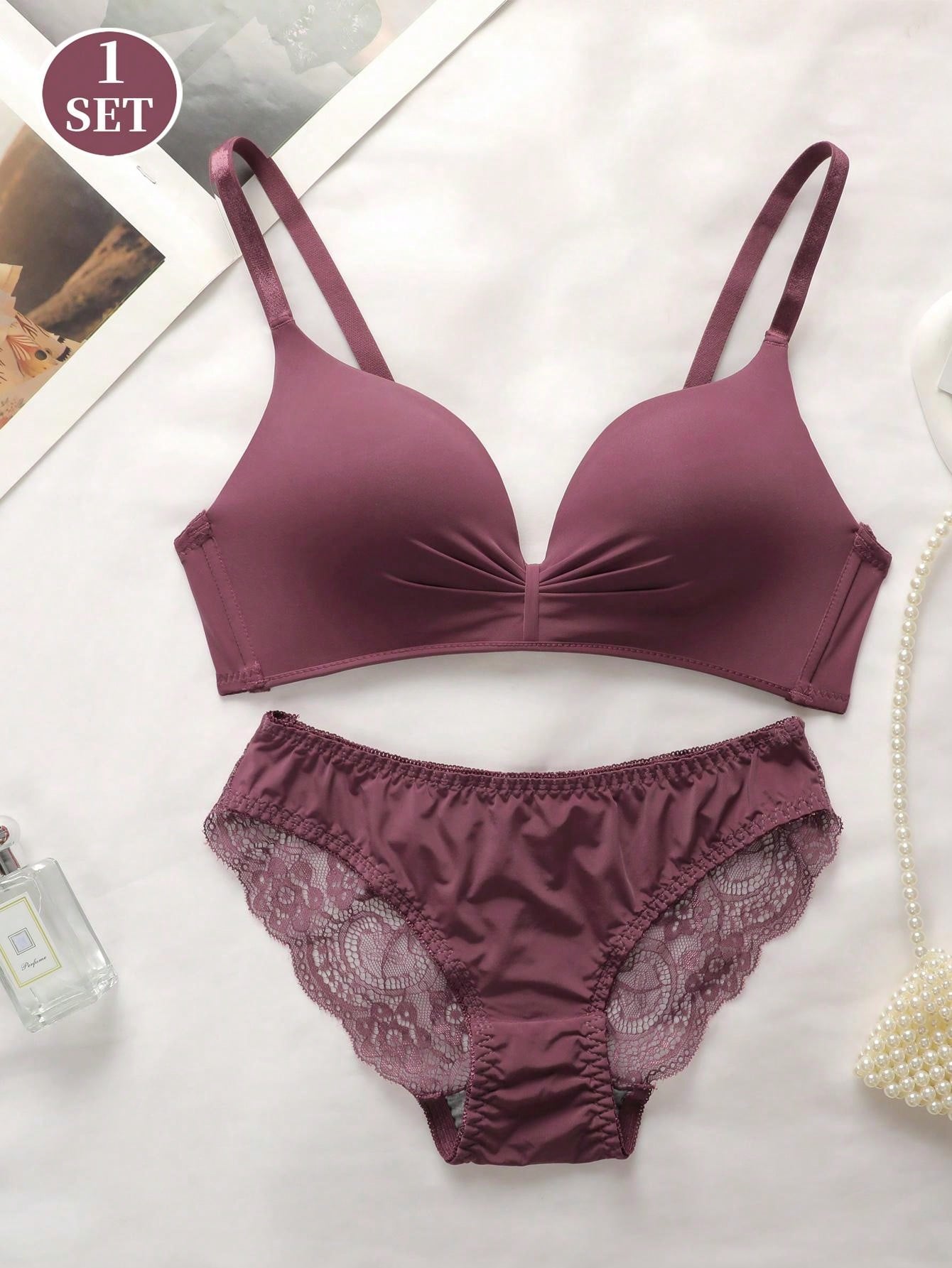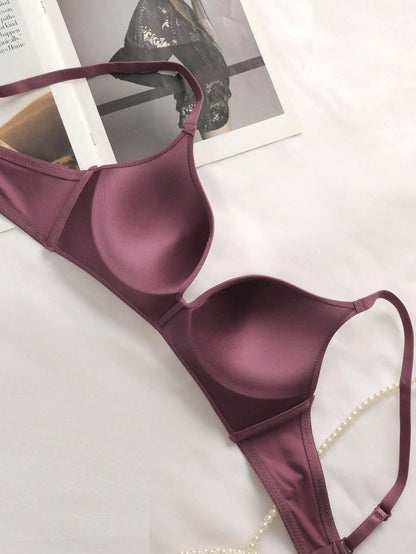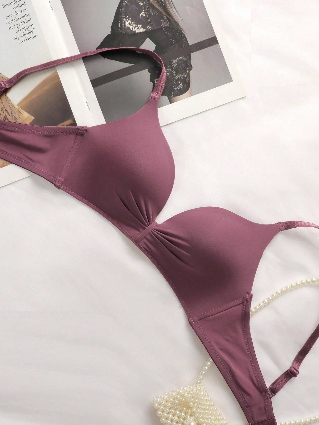 1set Electronic Music Festival Underwear Set, Solid Color Low Waist Triangle Panty, Wireless Bra, Suitable For Outdoor Wear, Swimwear, Beachwear