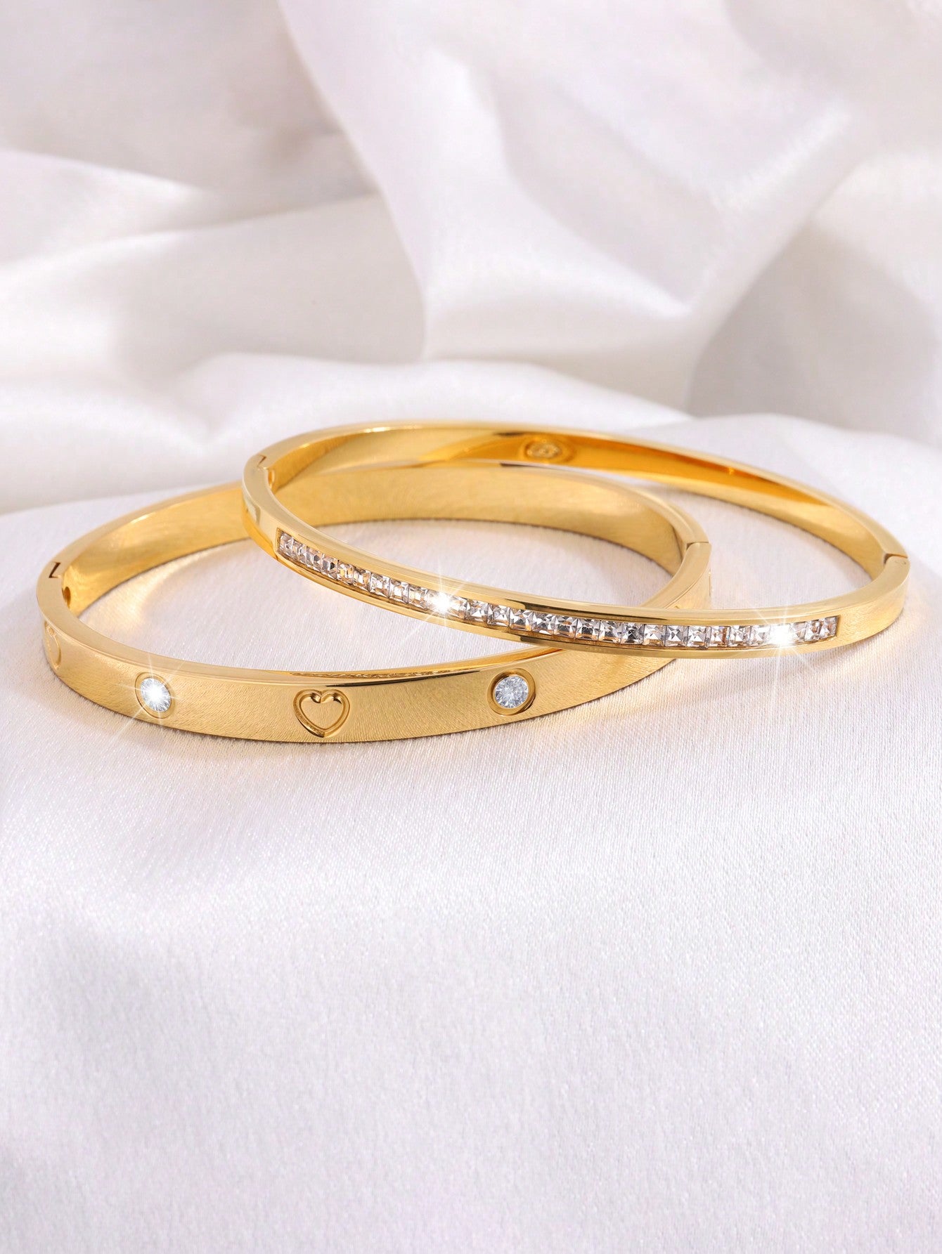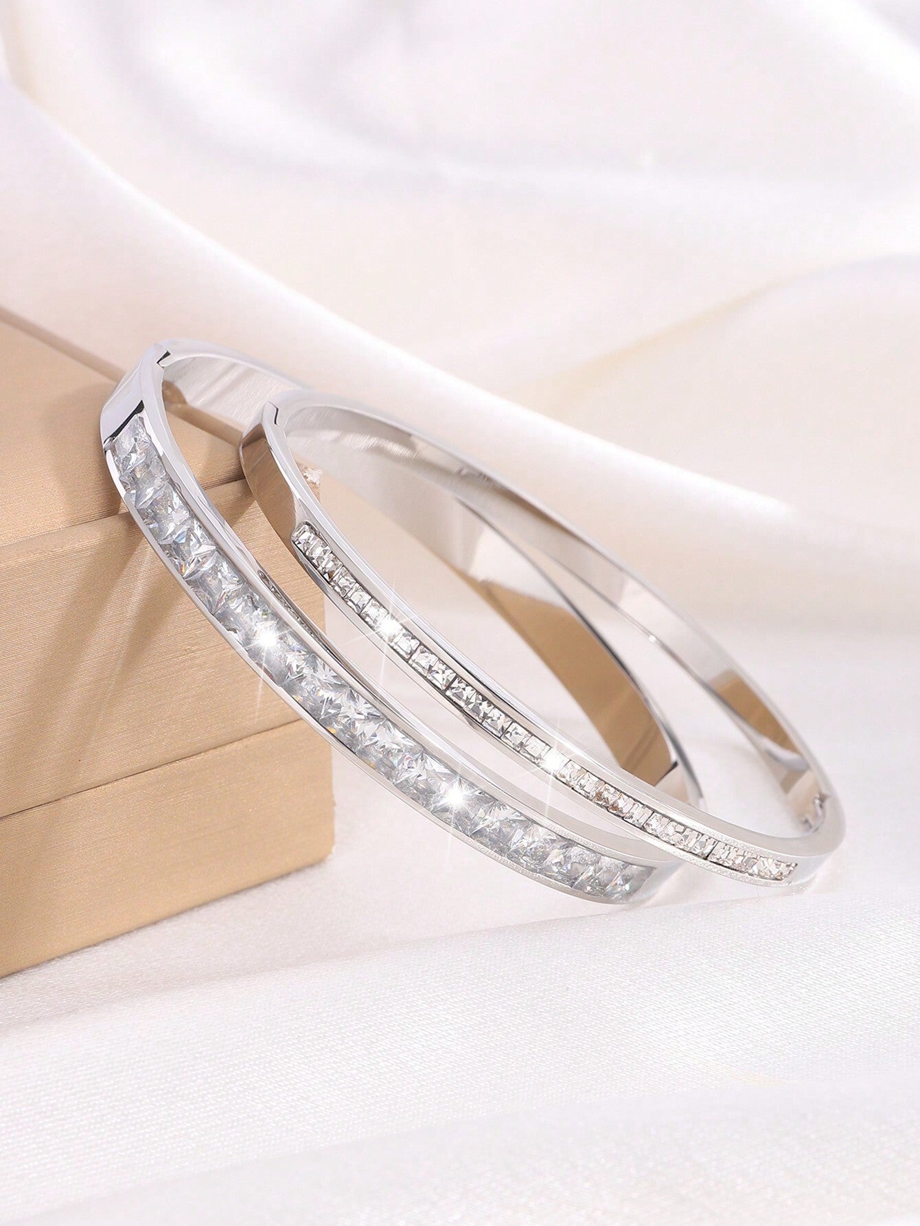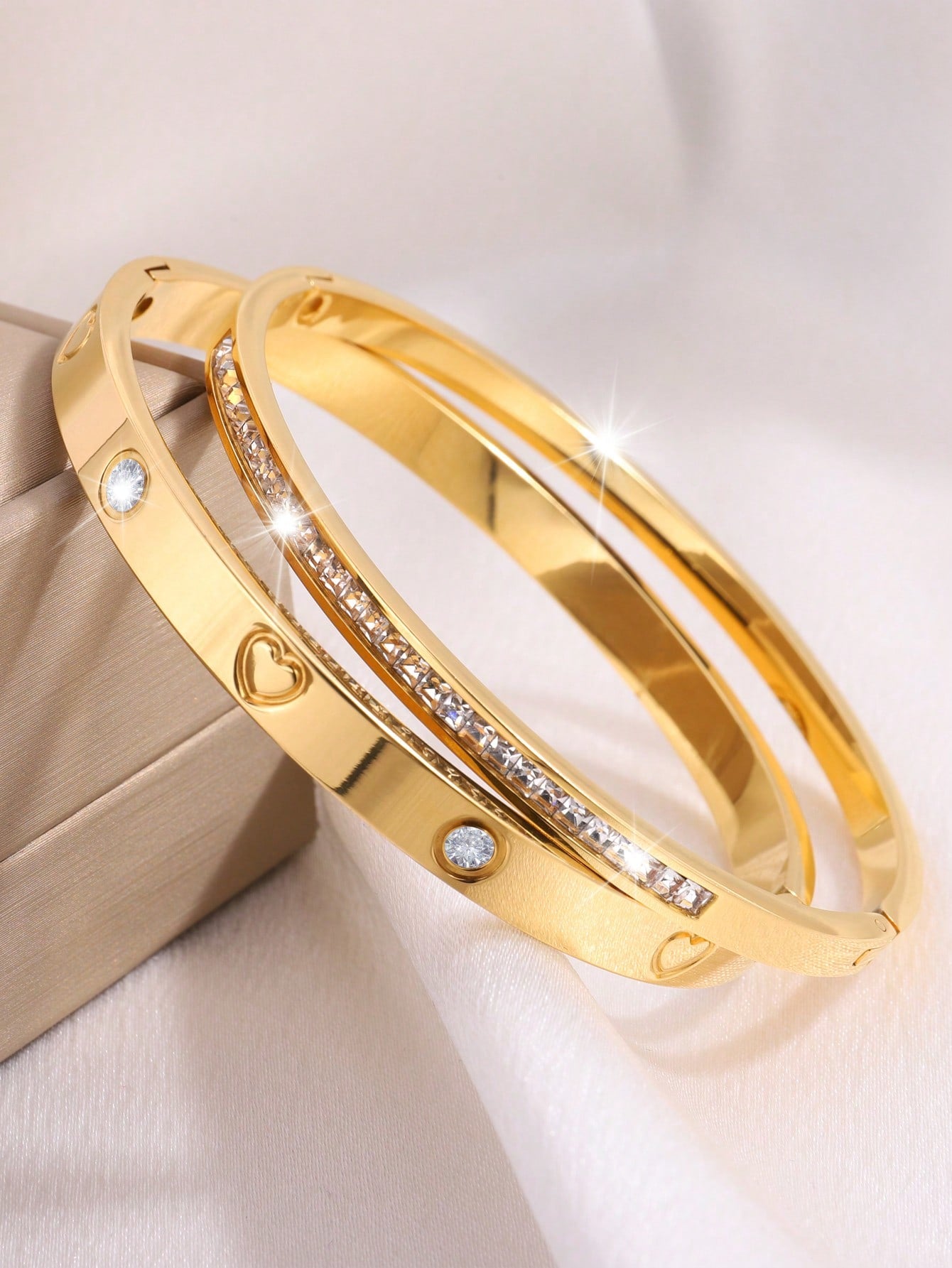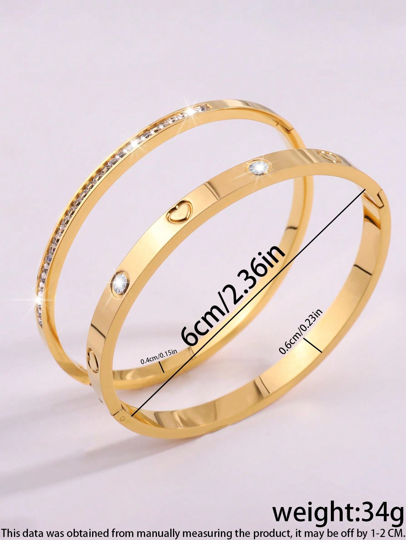 2 Pcs Of Light Luxury Exquisite Personality Design Stainless Steel Love Single Row Drill Bracelet Suitable For Ladies To Wear On Dates