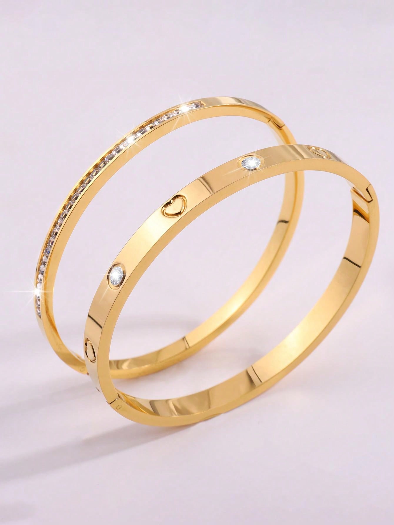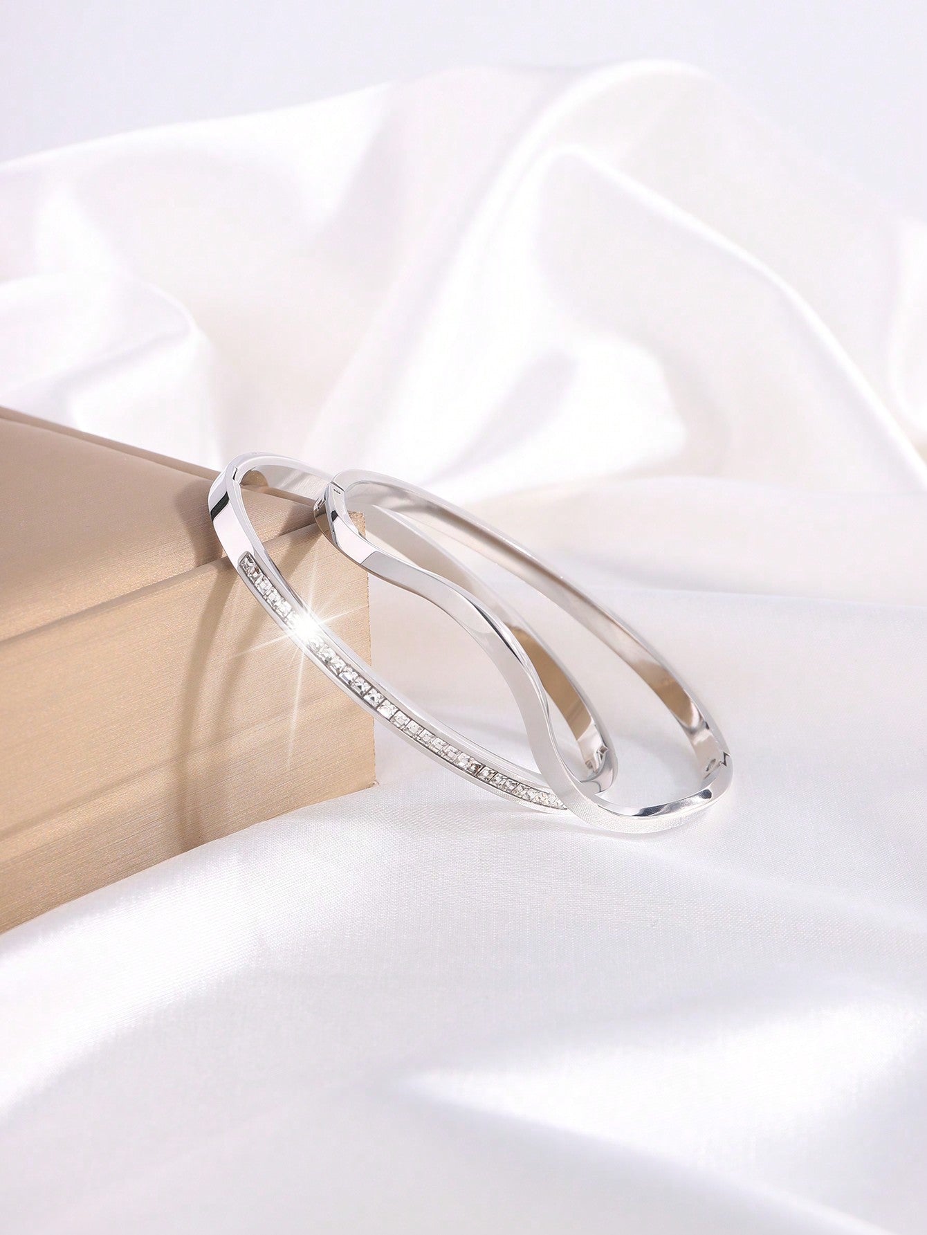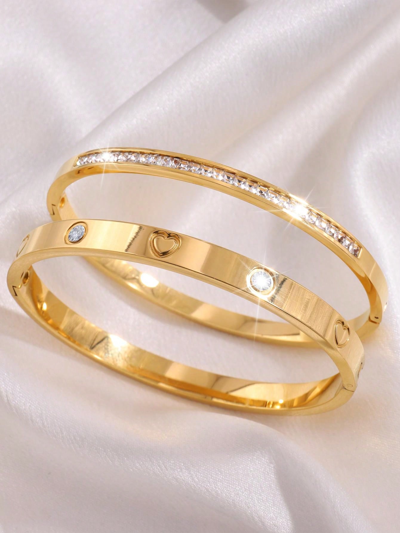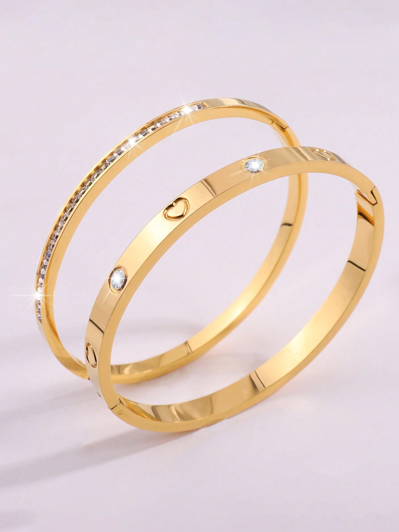 2 Pcs Of Light Luxury Exquisite Personality Design Stainless Steel Love Single Row Drill Bracelet Suitable For Ladies To Wear On Dates