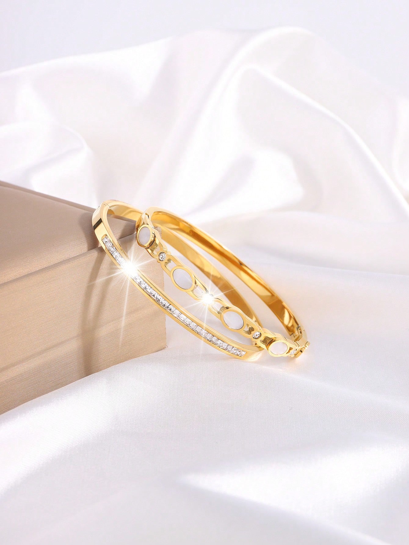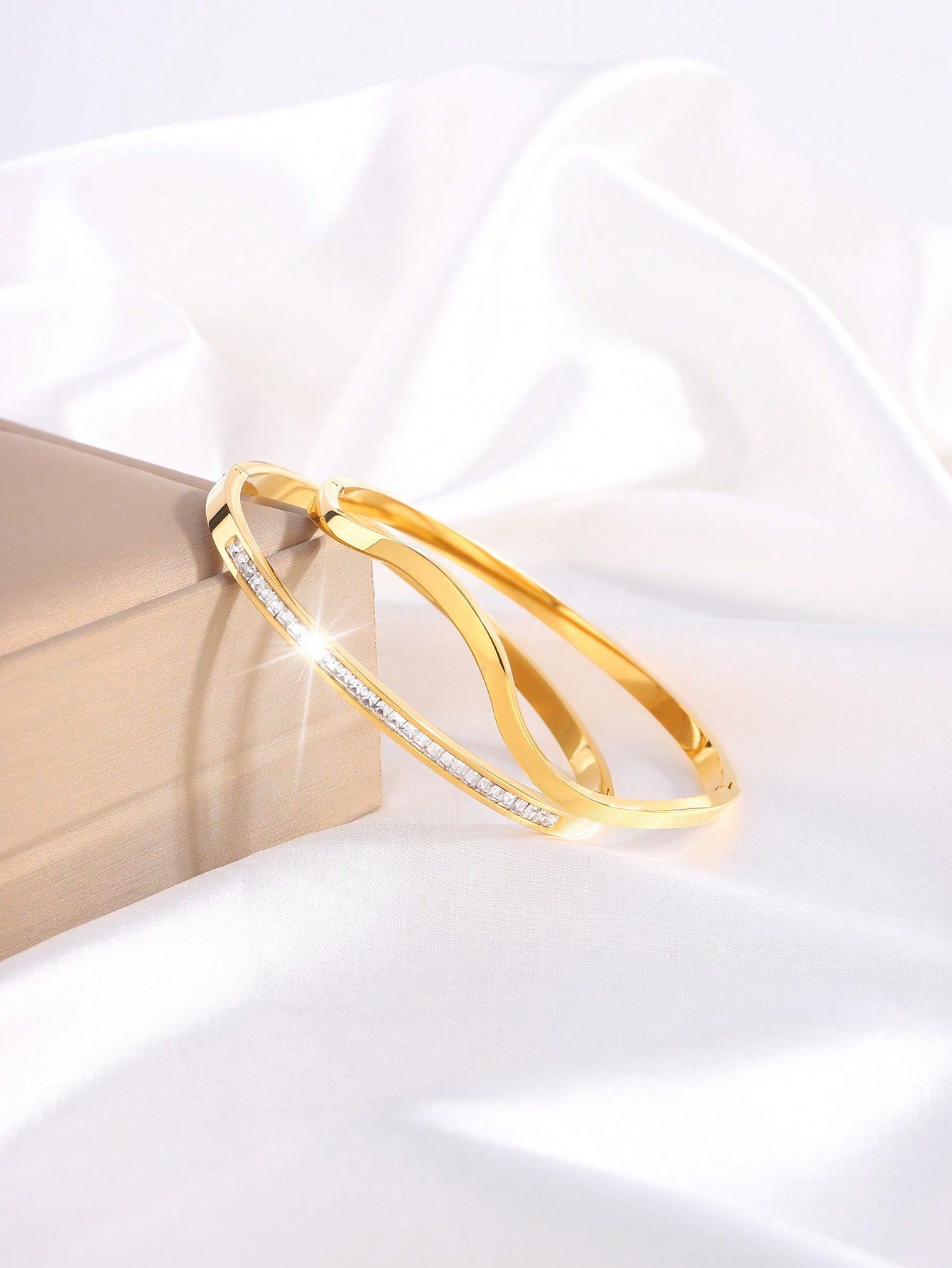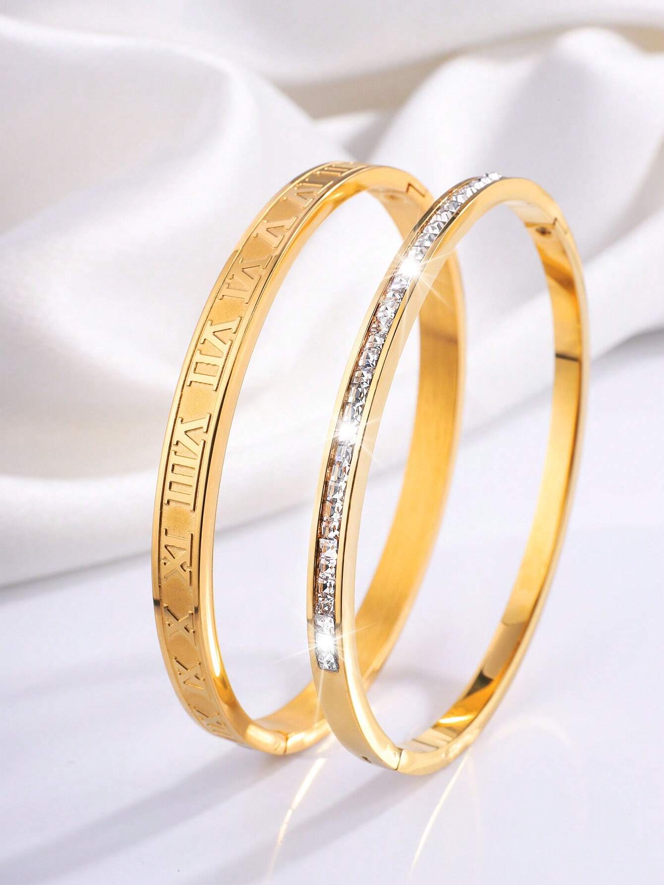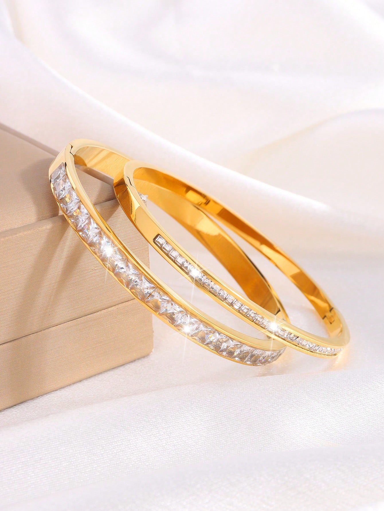 2 Pcs Of Light Luxury Exquisite Personality Design Stainless Steel Love Single Row Drill Bracelet Suitable For Ladies To Wear On Dates