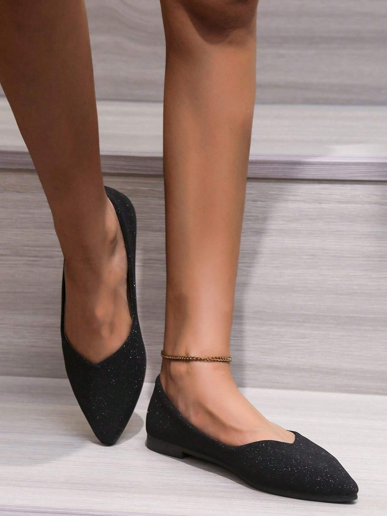 2024 Autumn Women's Shoes, New Black & Gold Pointed Toe Flat Slip-On Loafers
