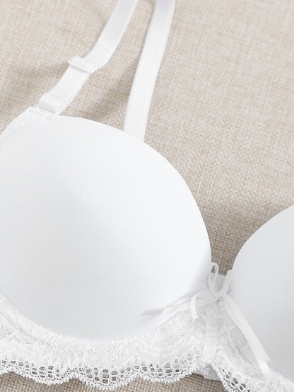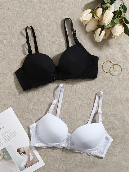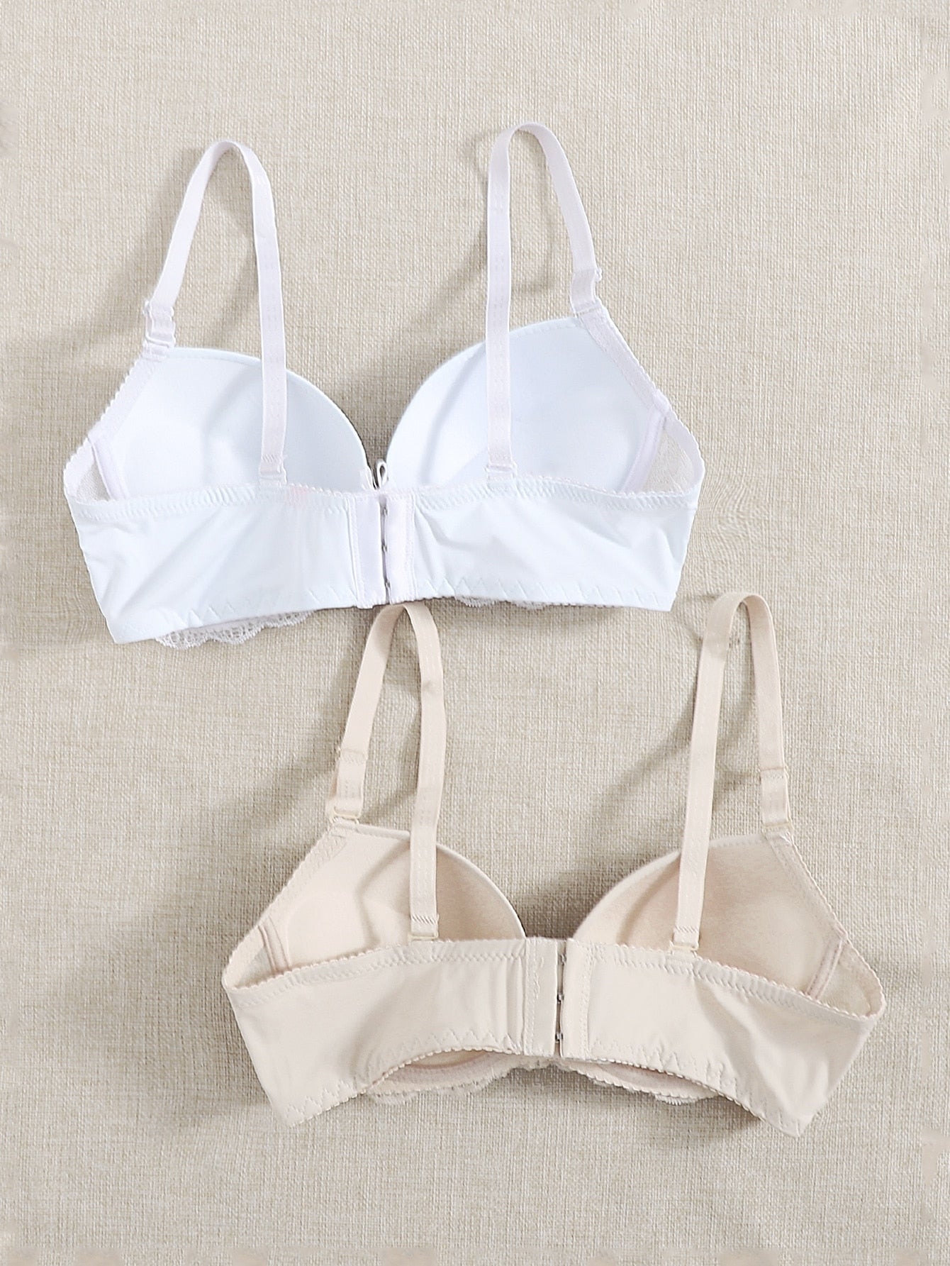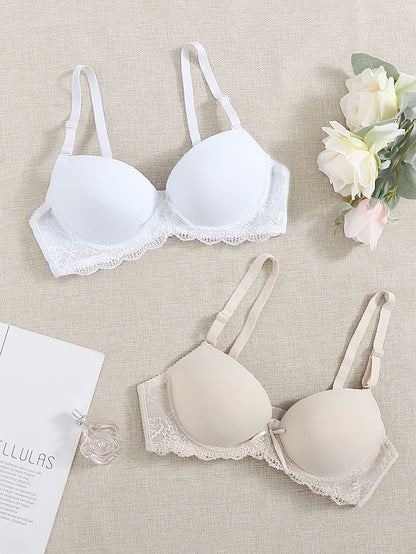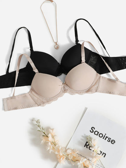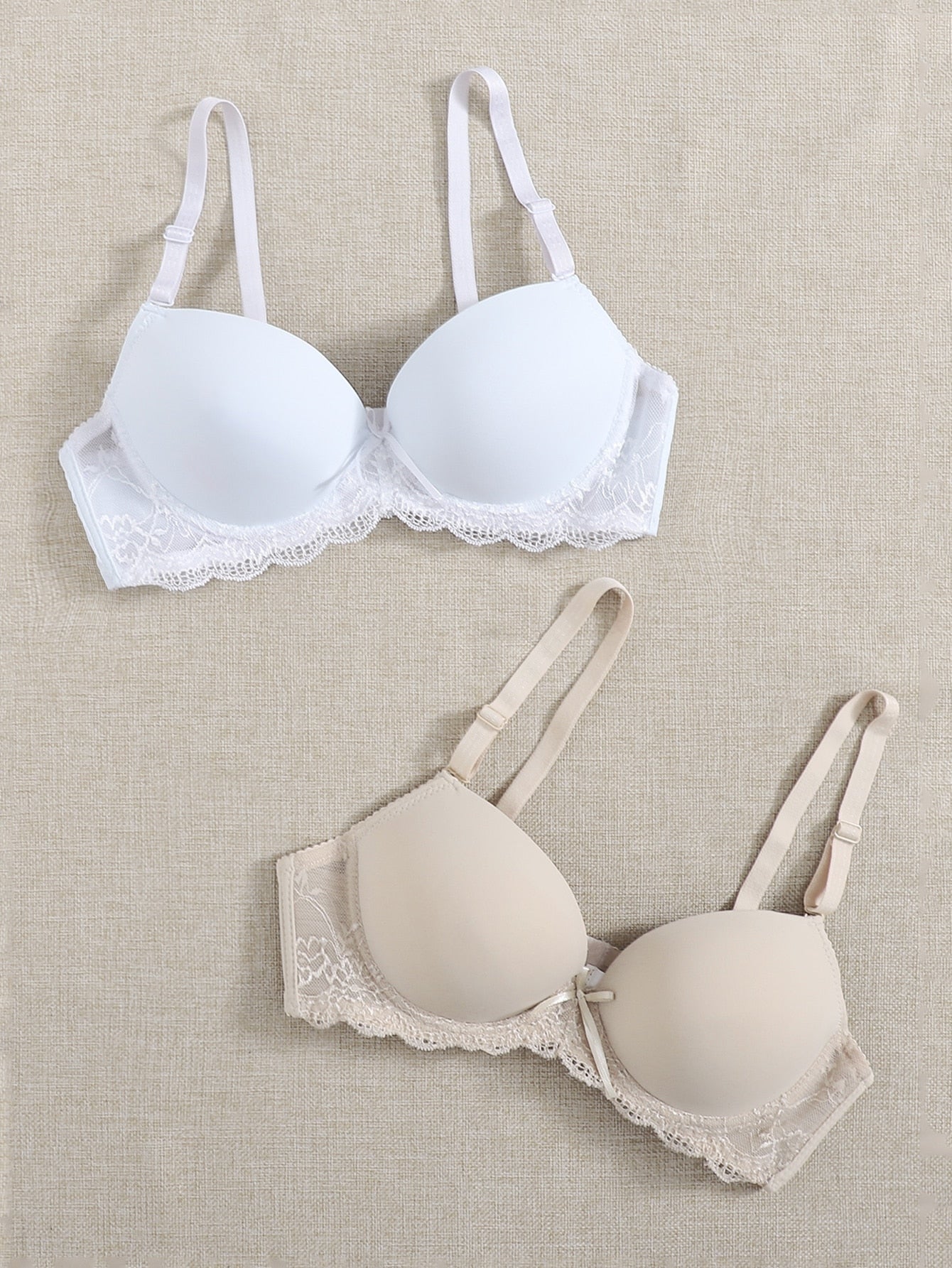 2pack Lace Trim Bow Decor Underwire Bra Set