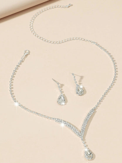 3pcs/set Lady's Teardrop Pendant Earrings And Necklace Set