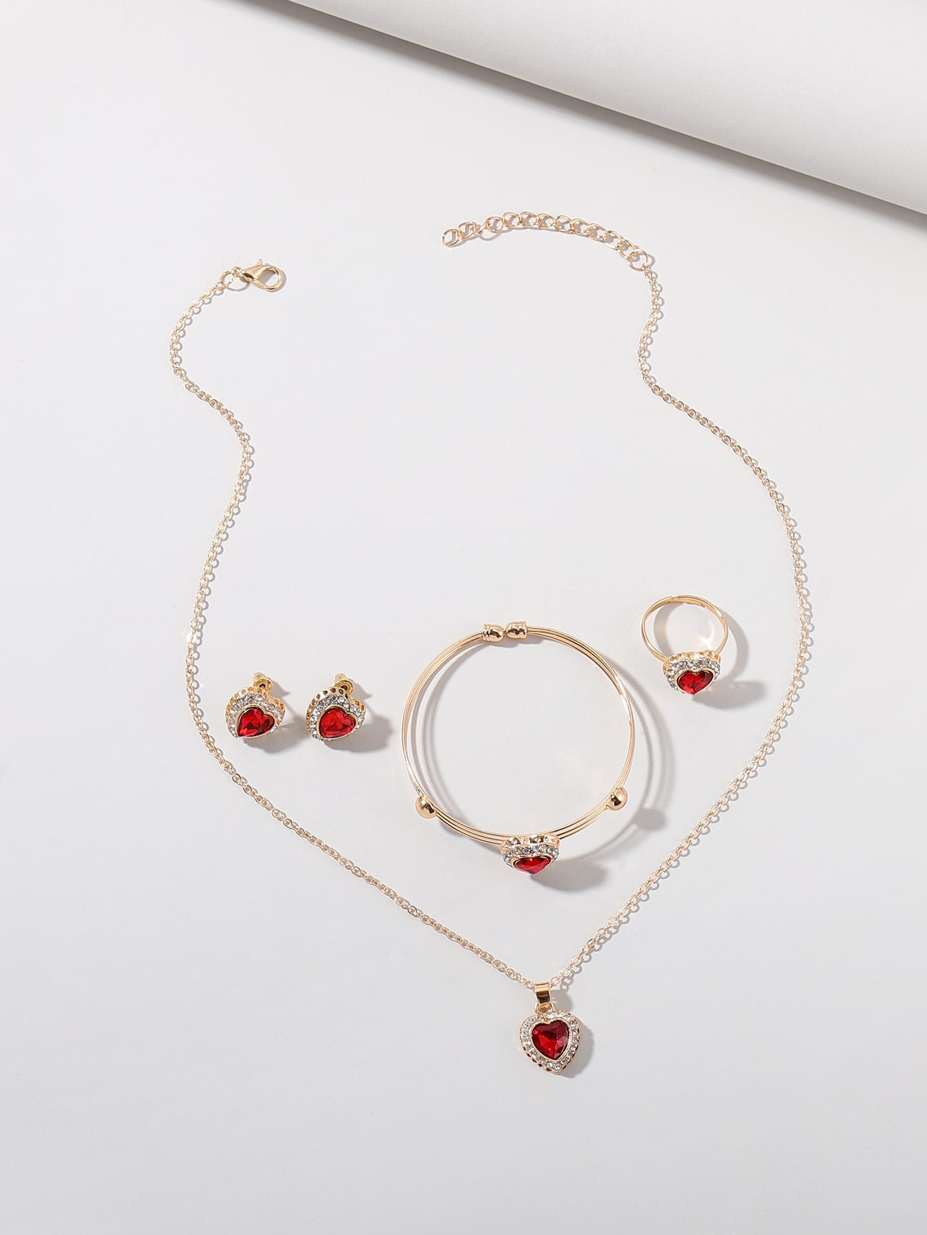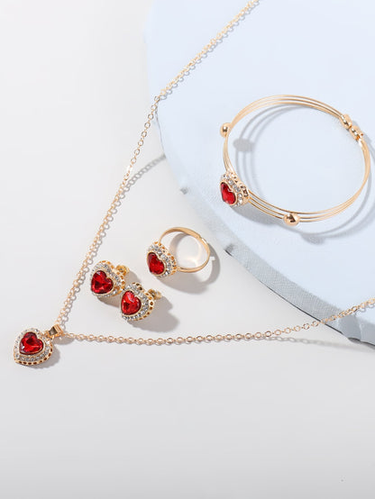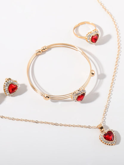 5pcs Rhinestone Heart Decor Jewelry Set