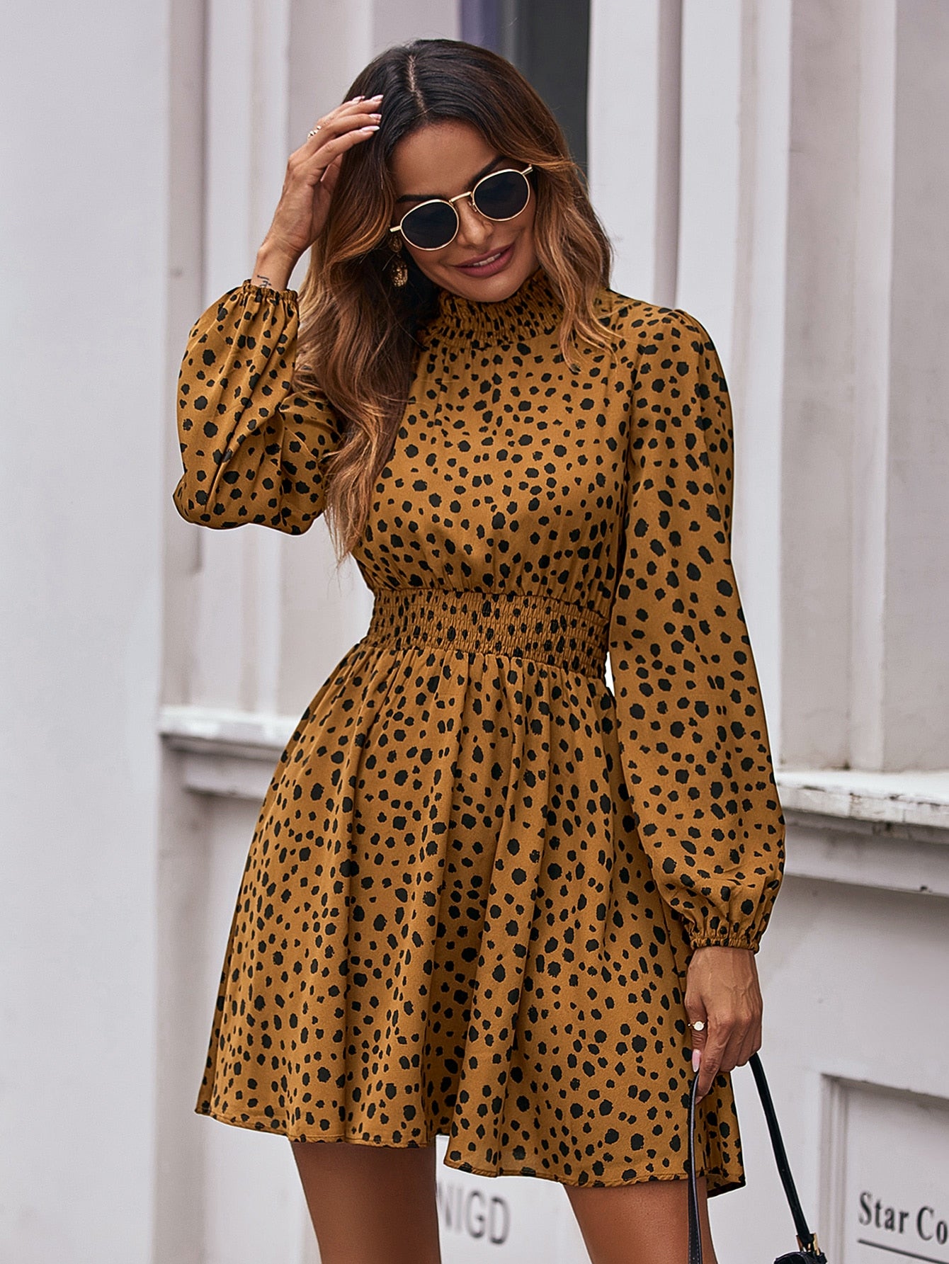 All Over Print Shirred Waist Dress