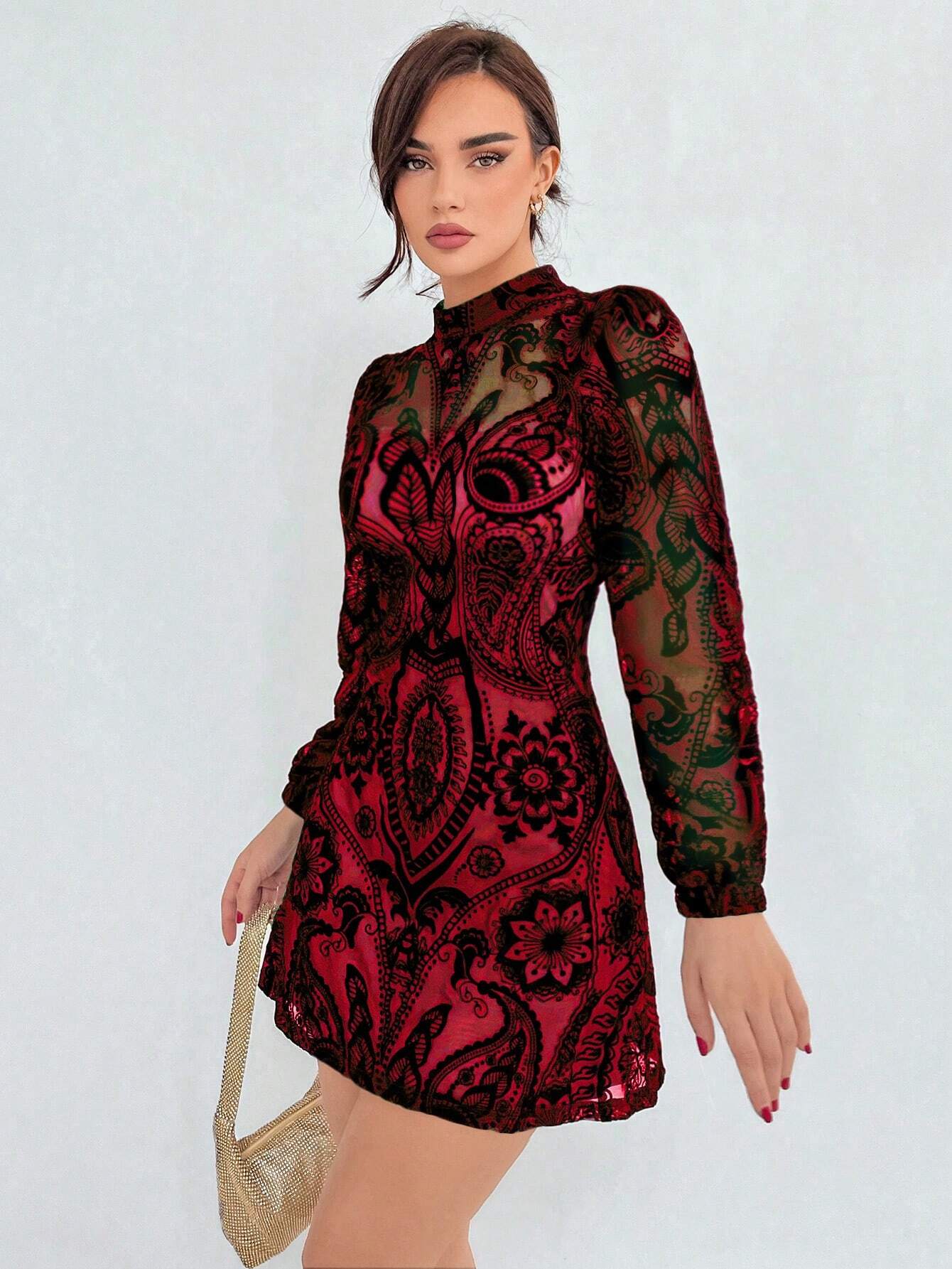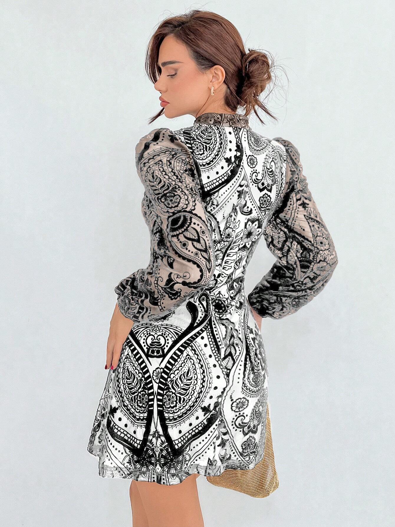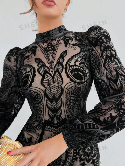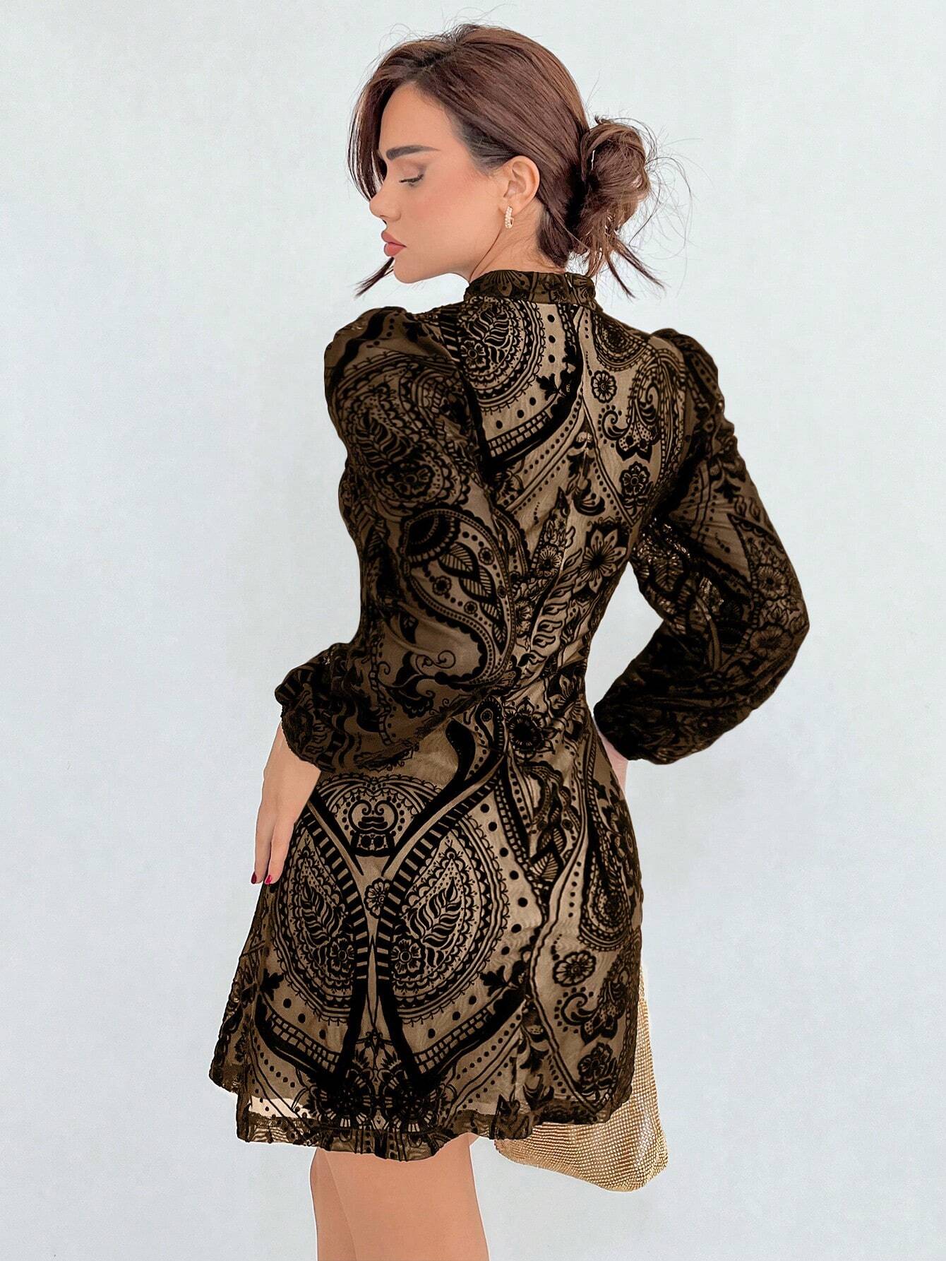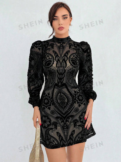 Aloruh Plush Gathered Waist Elegant Puff Sleeve Dress