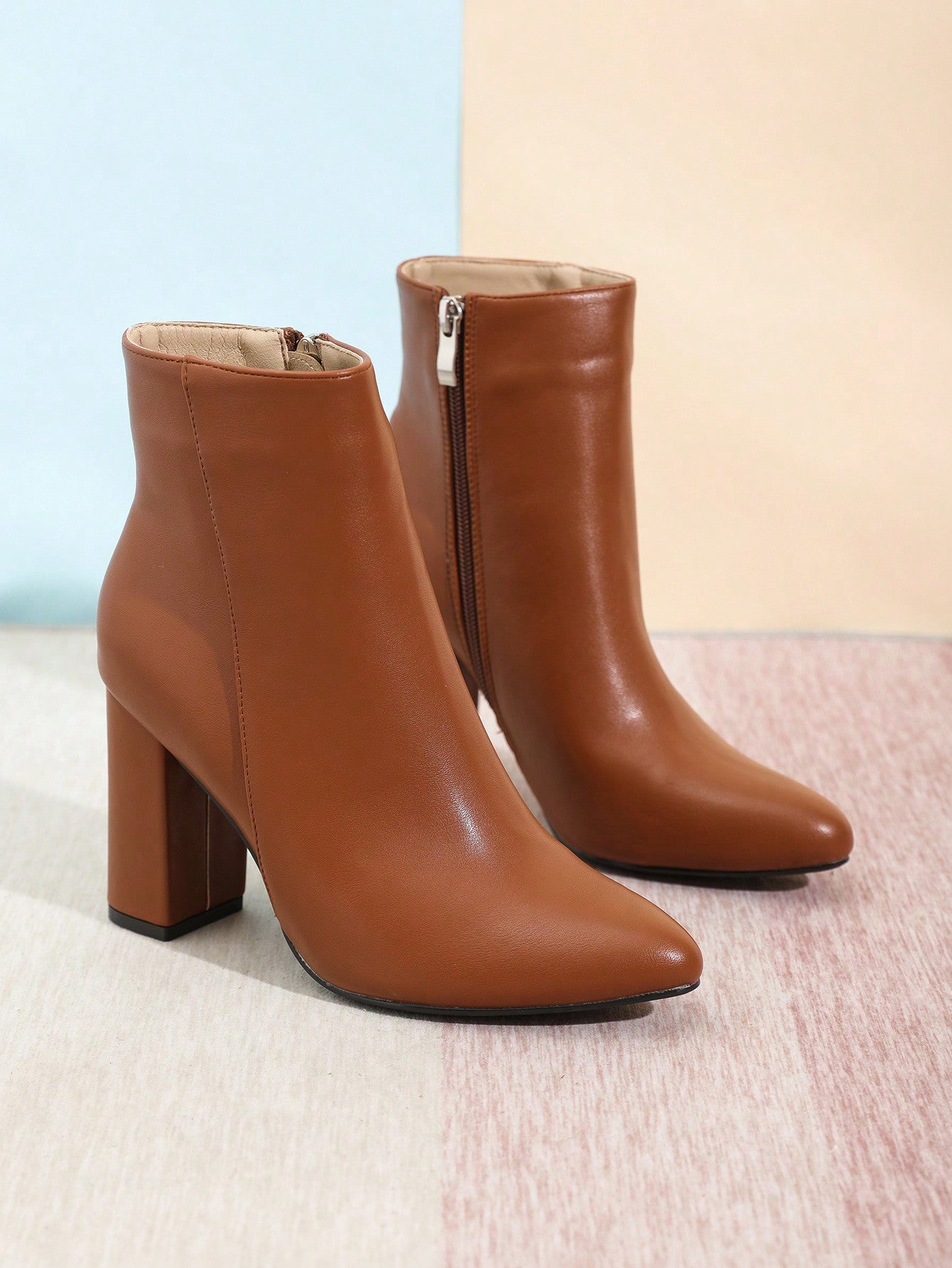 Apricot Women Ankle Boots, Fashion Short Boots, Winter High Heeled Thick Heel Boots