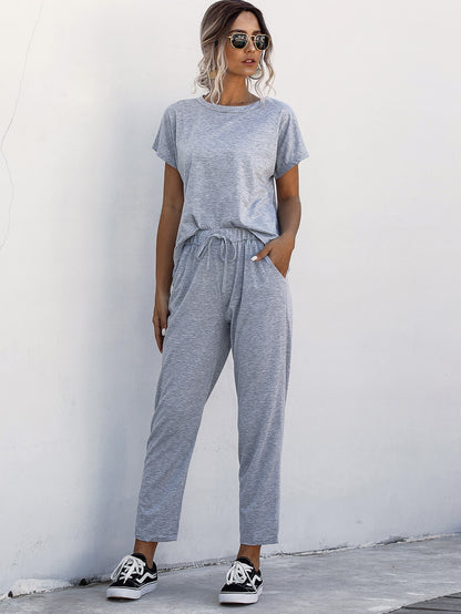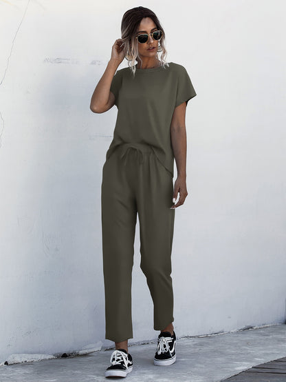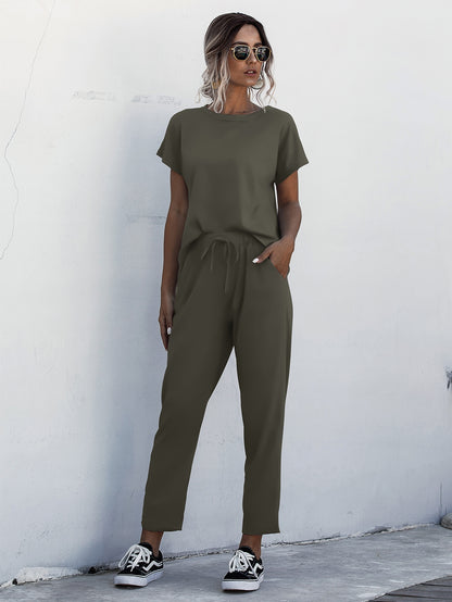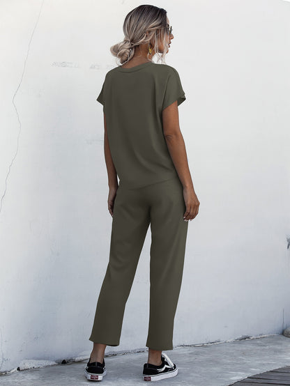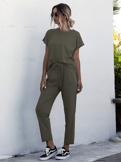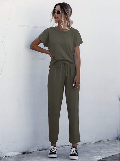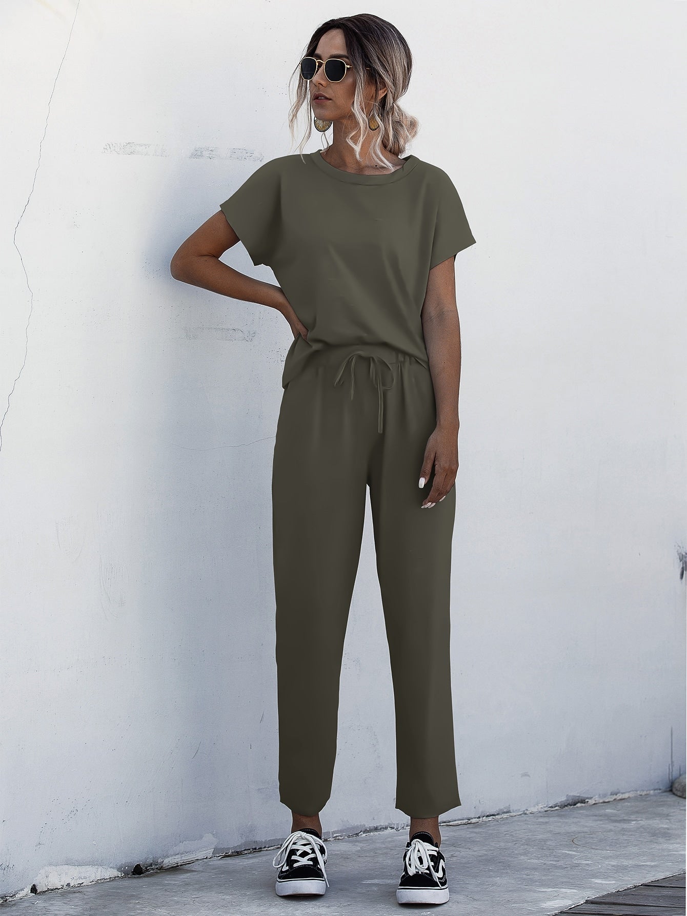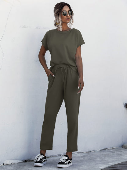 Batwing Sleeve Tee With Drawstring Waist Pants