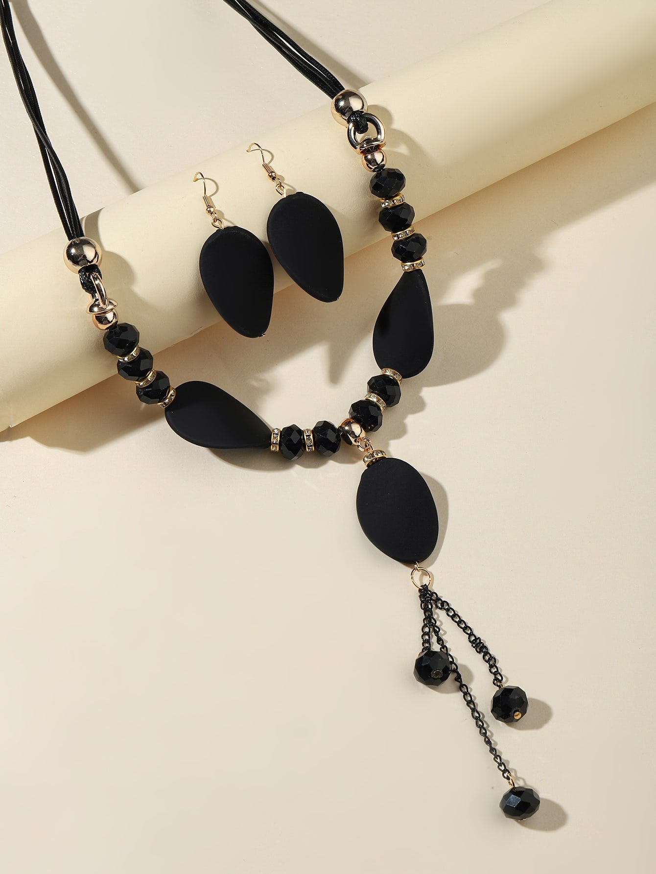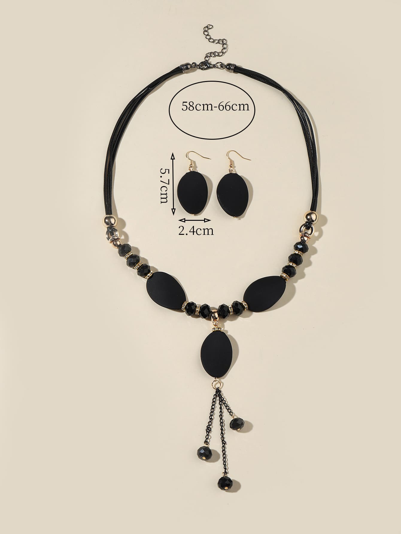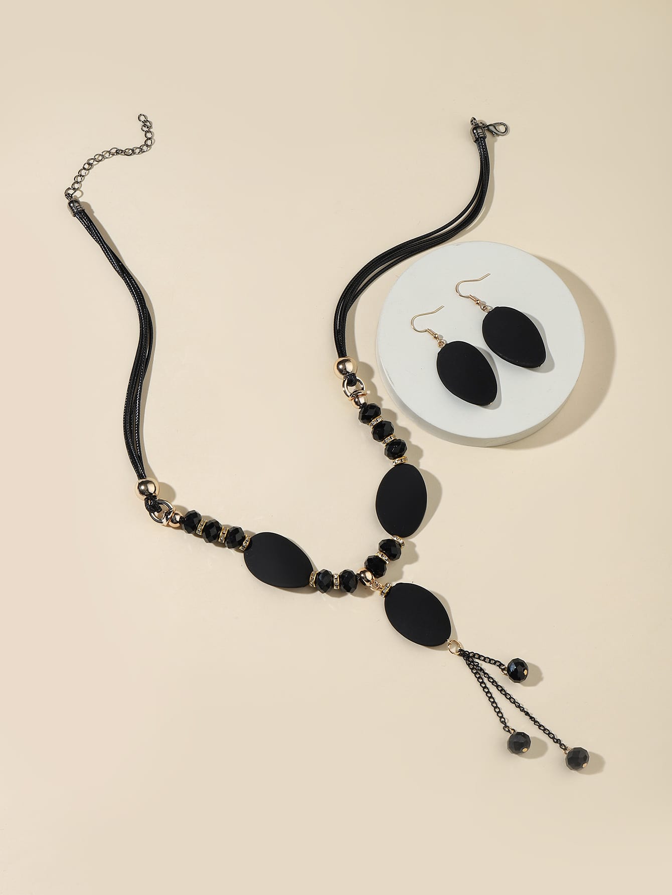 Bead Decor Oval Charm Necklace & Drop Earrings