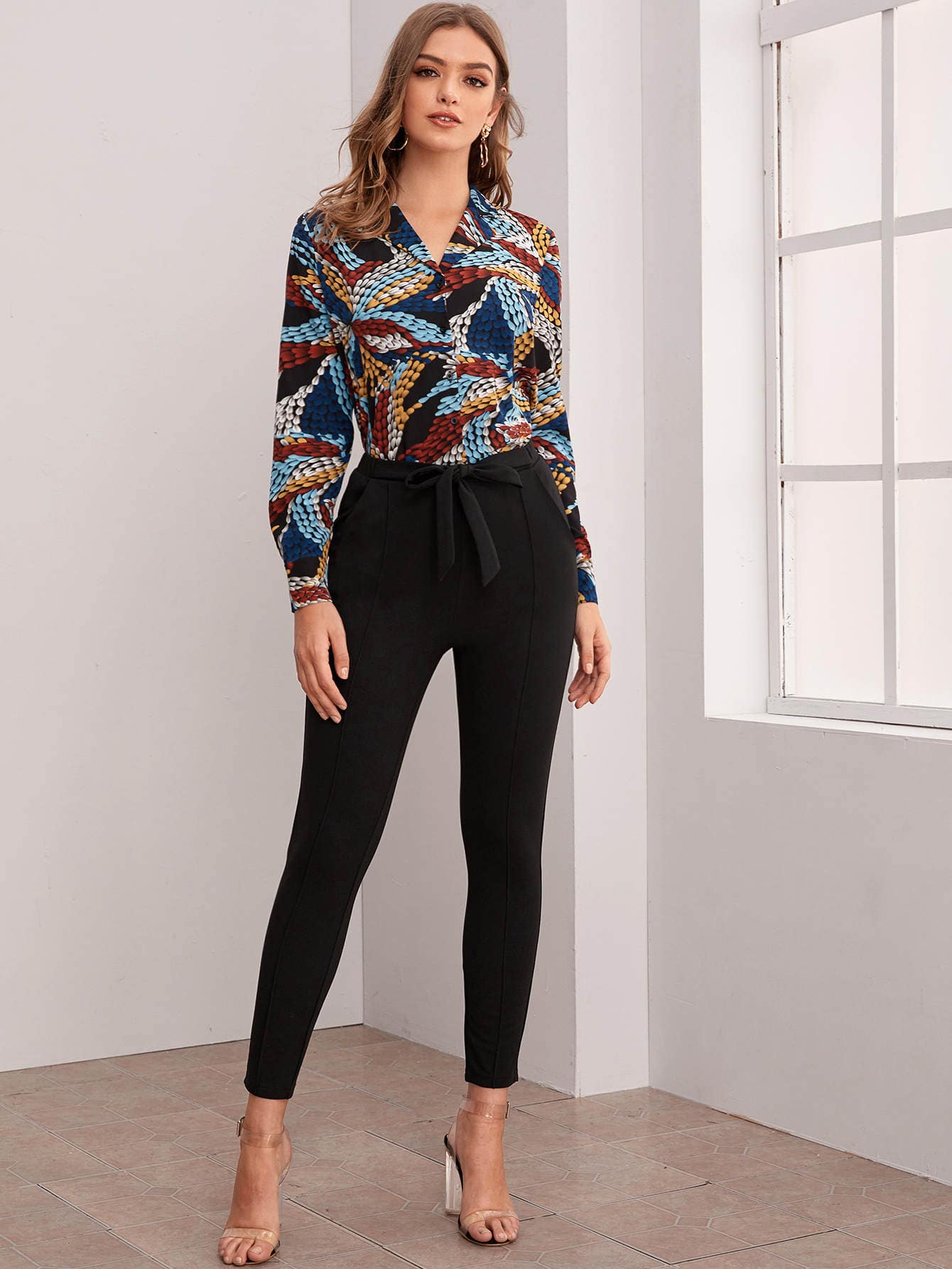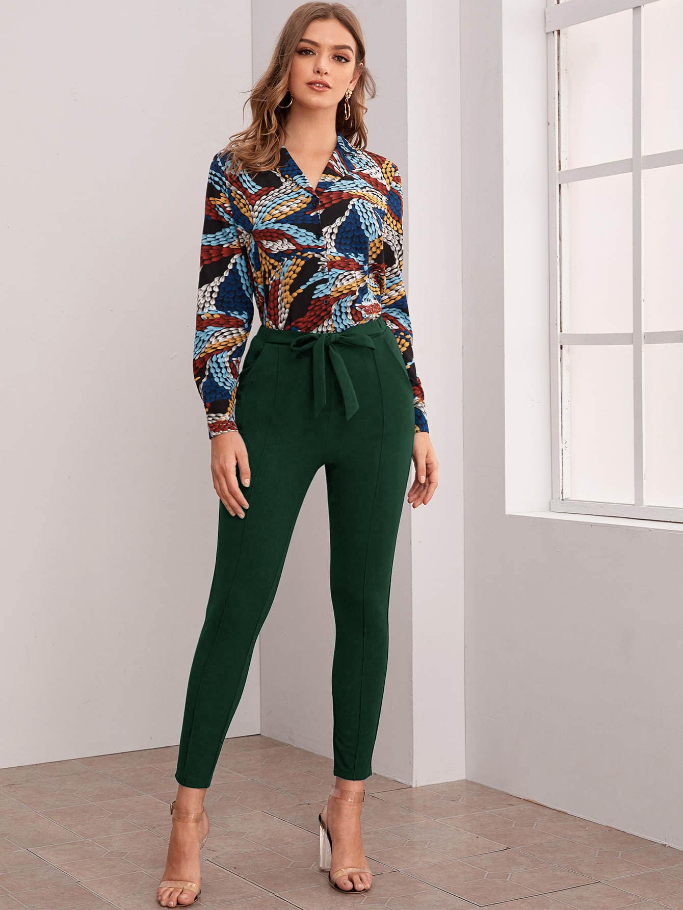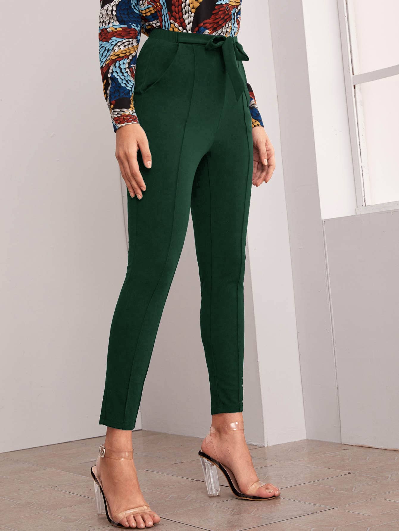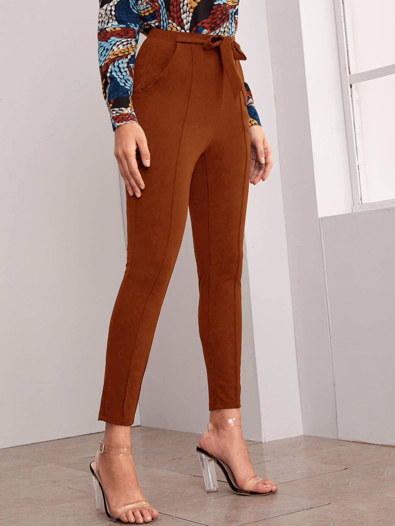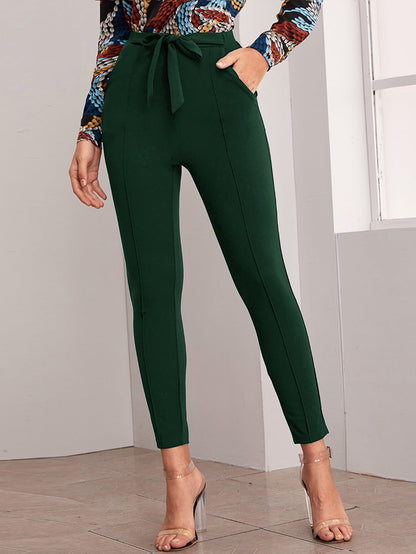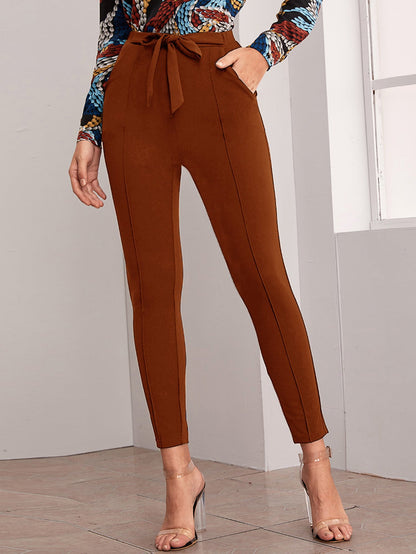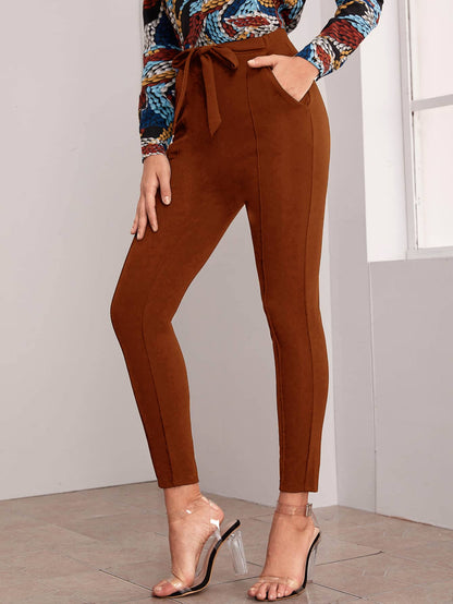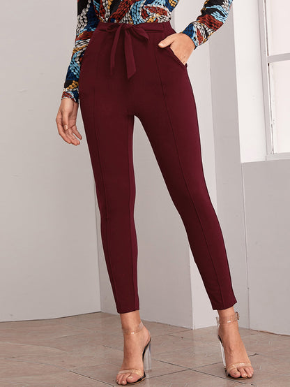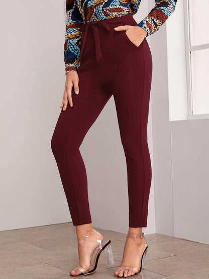 Belted Self-Tie Skinny Pants