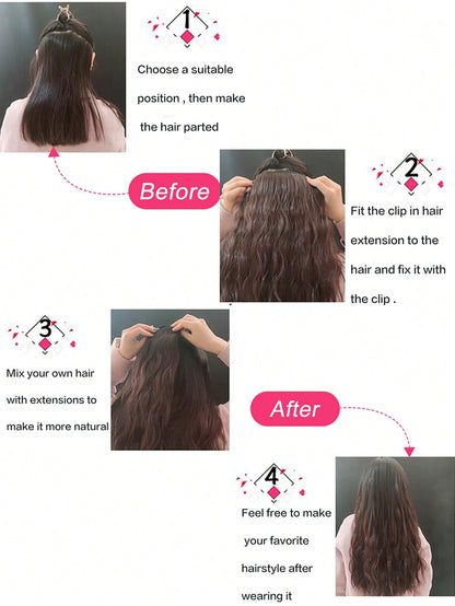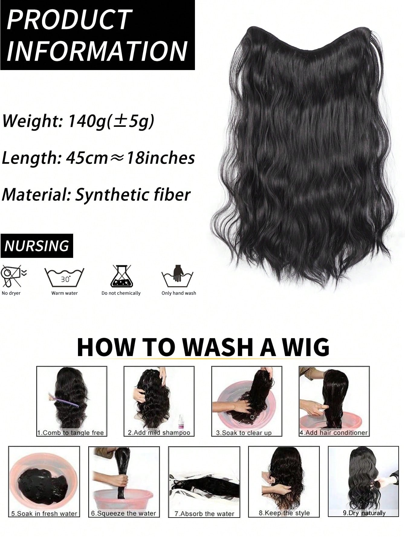 Body Wave Black 18-22 Inch V-Shaped Clip In Synthetic Hair Extension For Women