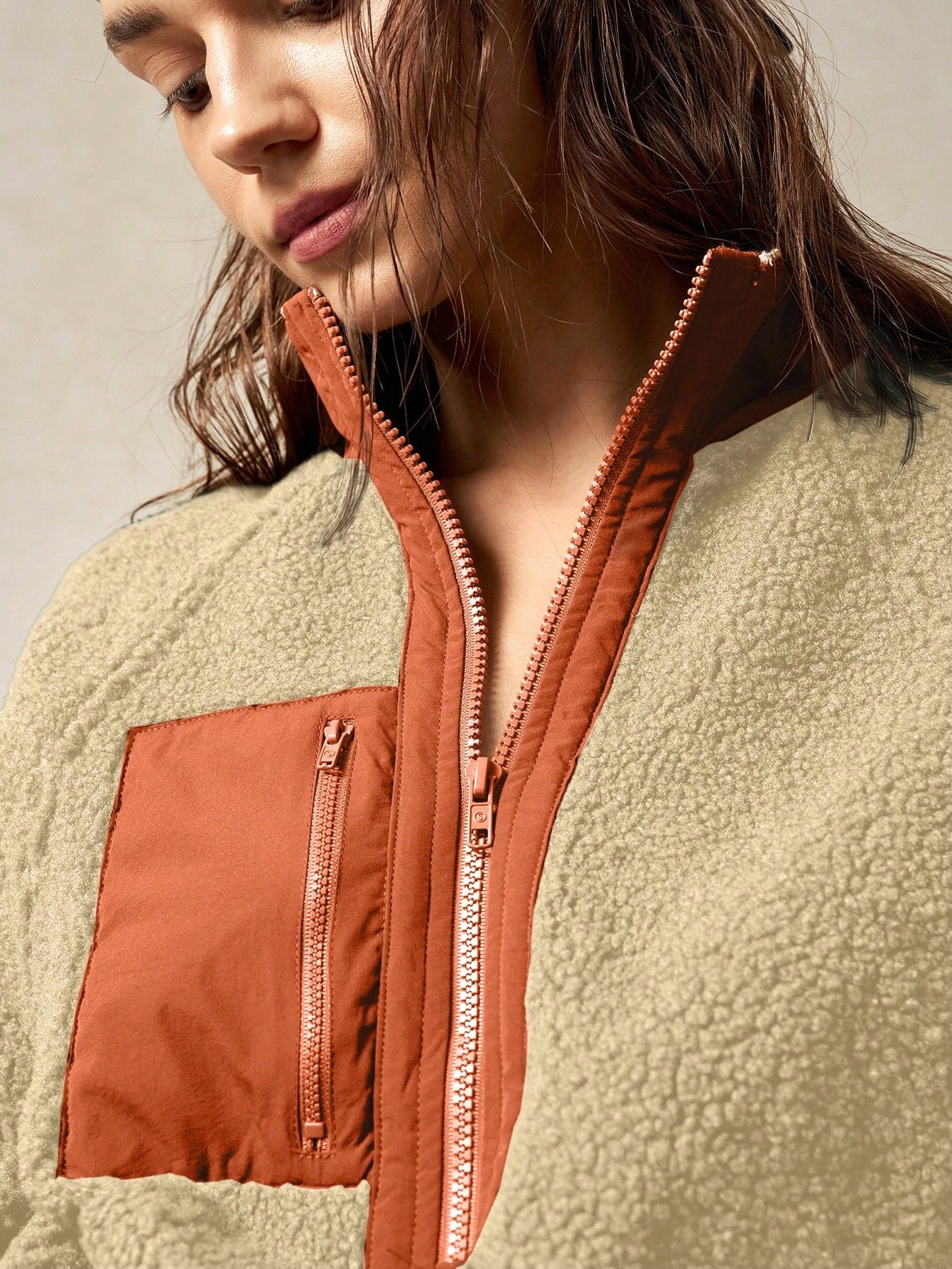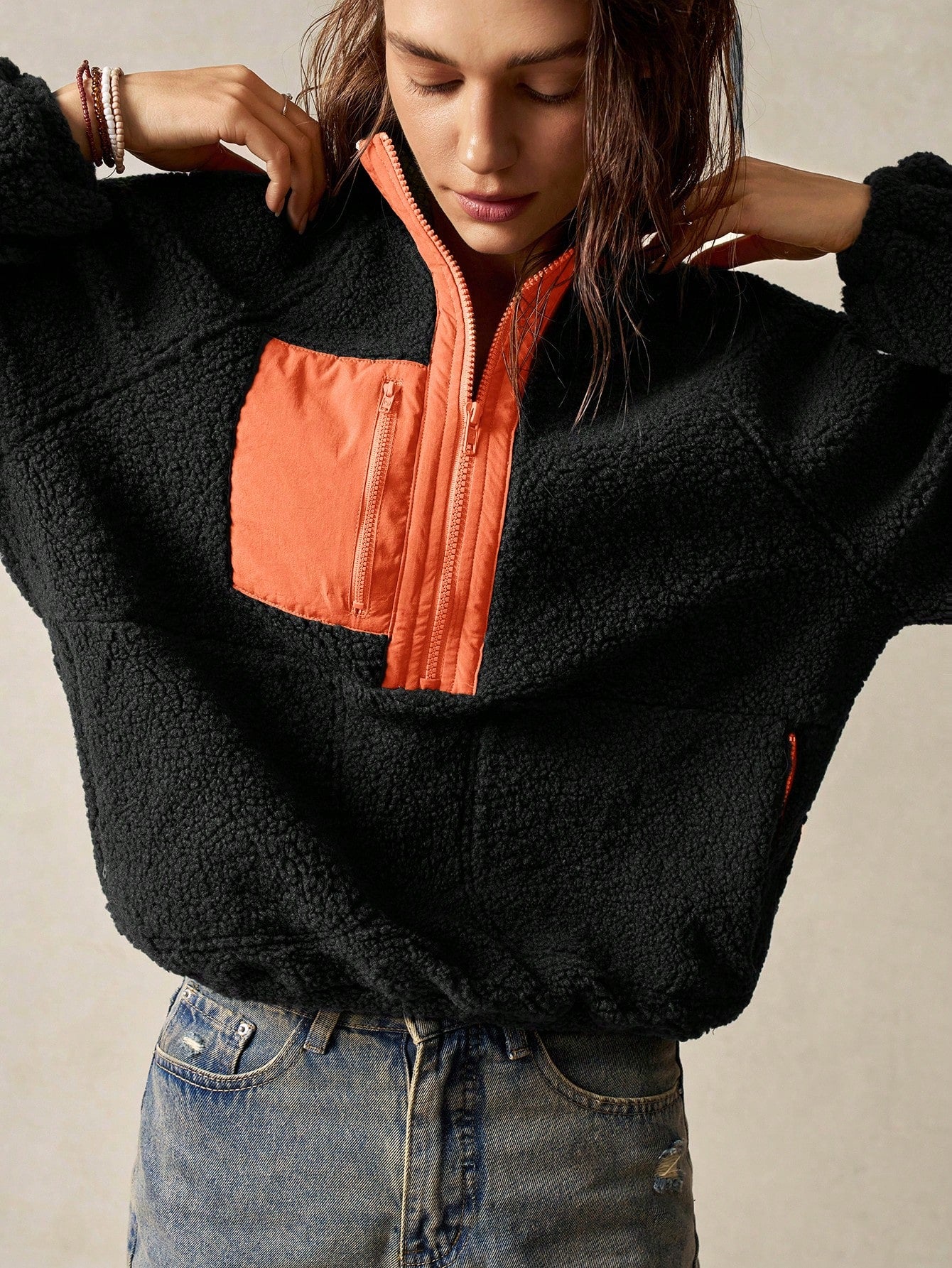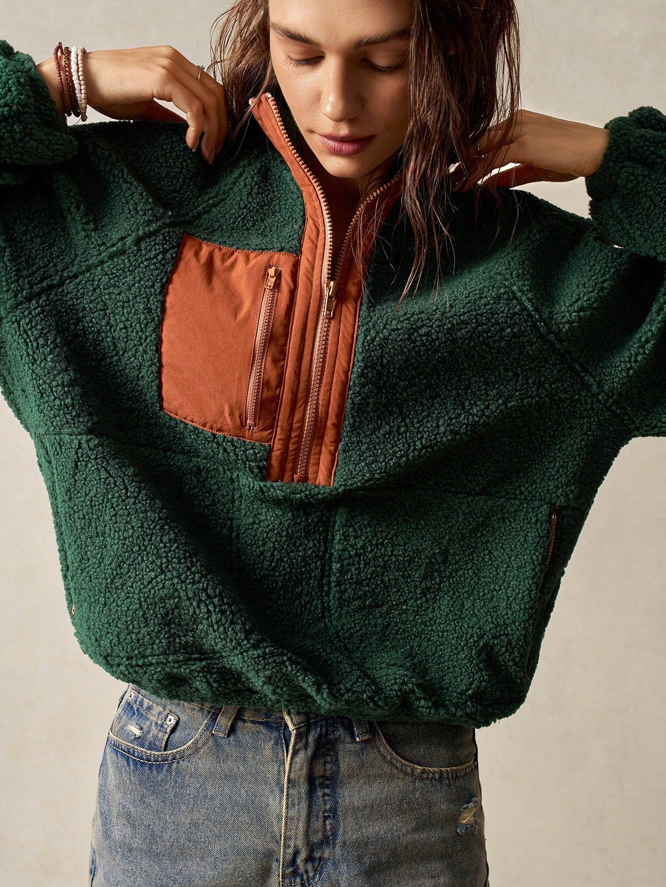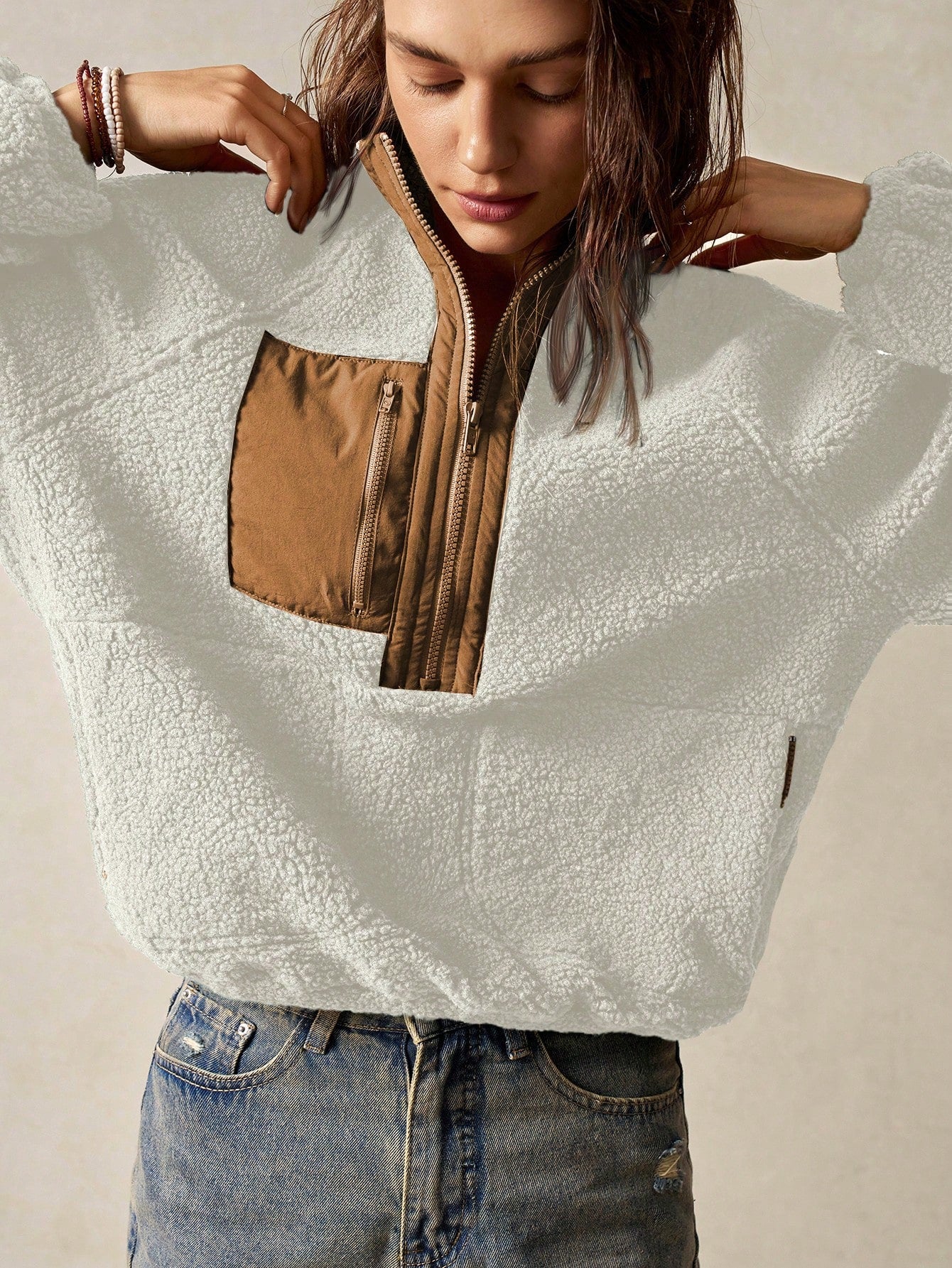 Bohemela Vacation Solid Color Knit Raglan Sleeve Long Sleeve Half-Zip Loose Women Sweatshirt